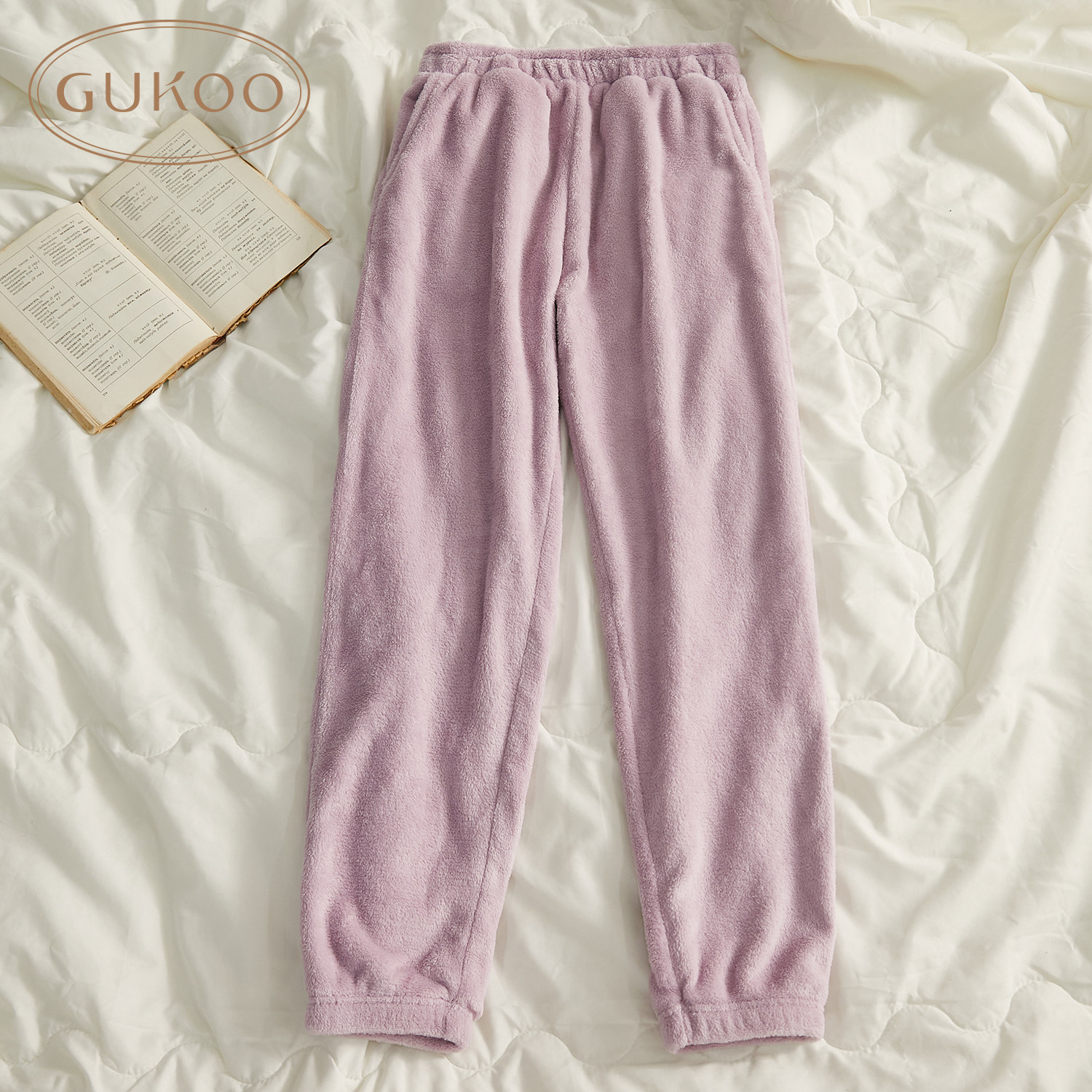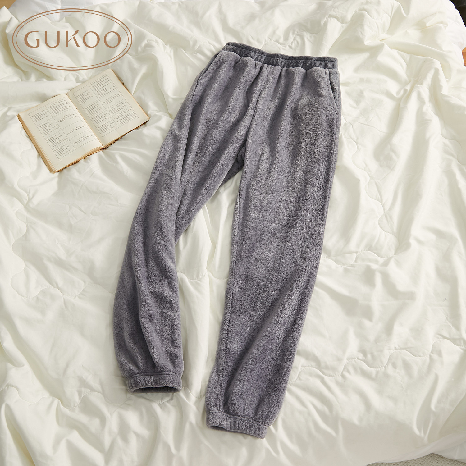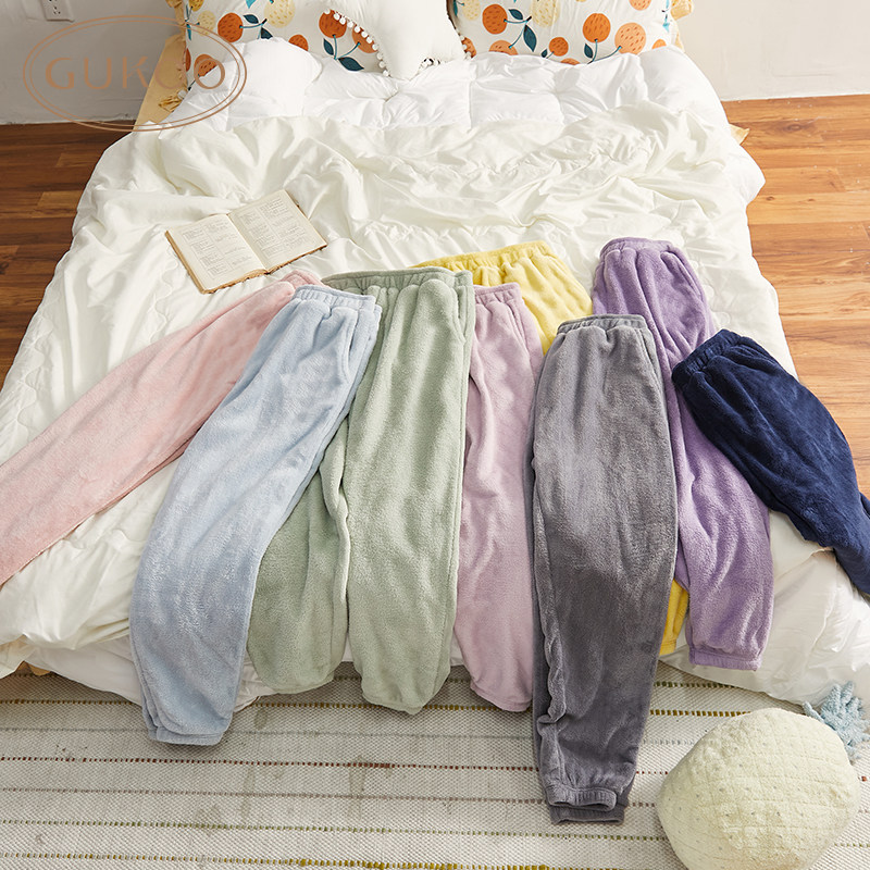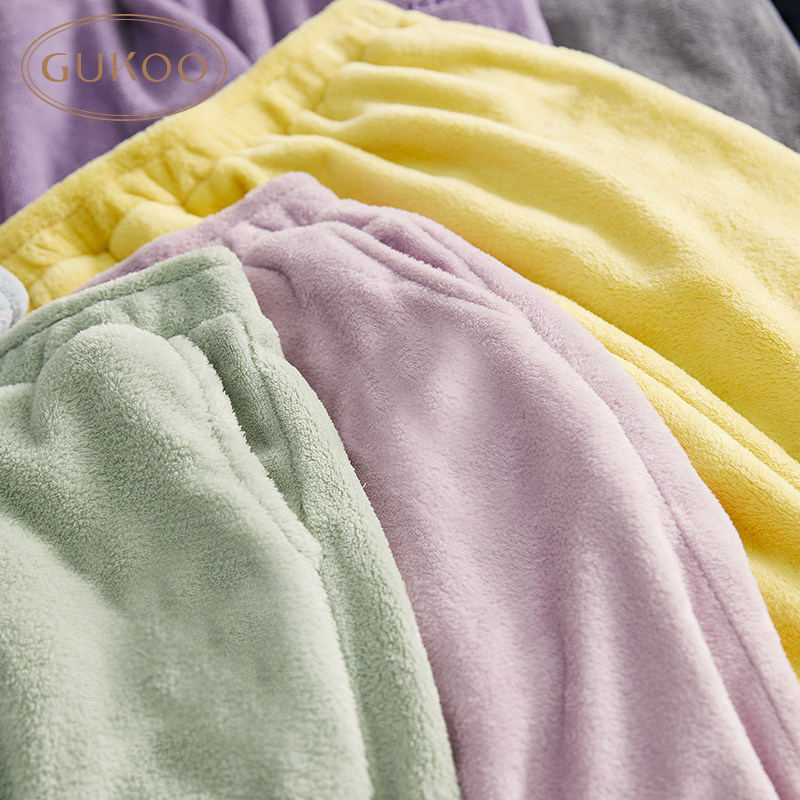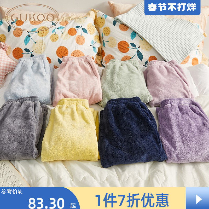 Gukoo/果壳 Демисезонные штаны для влюбленных, коралловые леггинсы, фланелевая пижама для отдыха