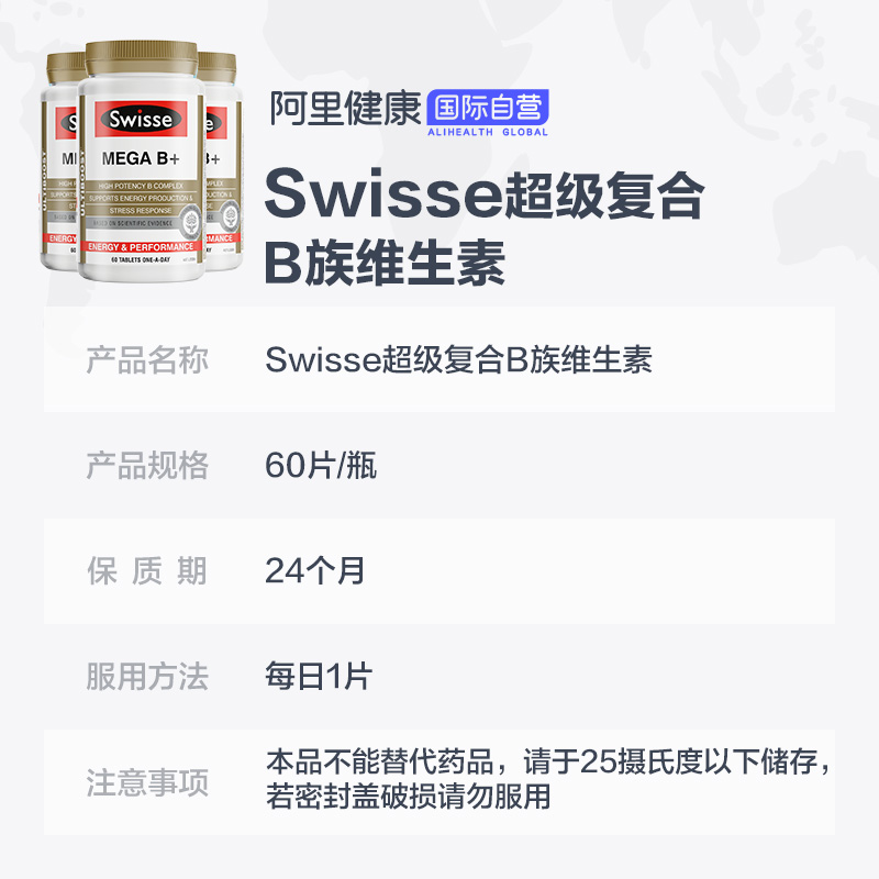 Австралия Swisse Swelle High -Dlought Composite Vitamin B Пленка Дополнительная энергия 60 Filter Live Cell*3
