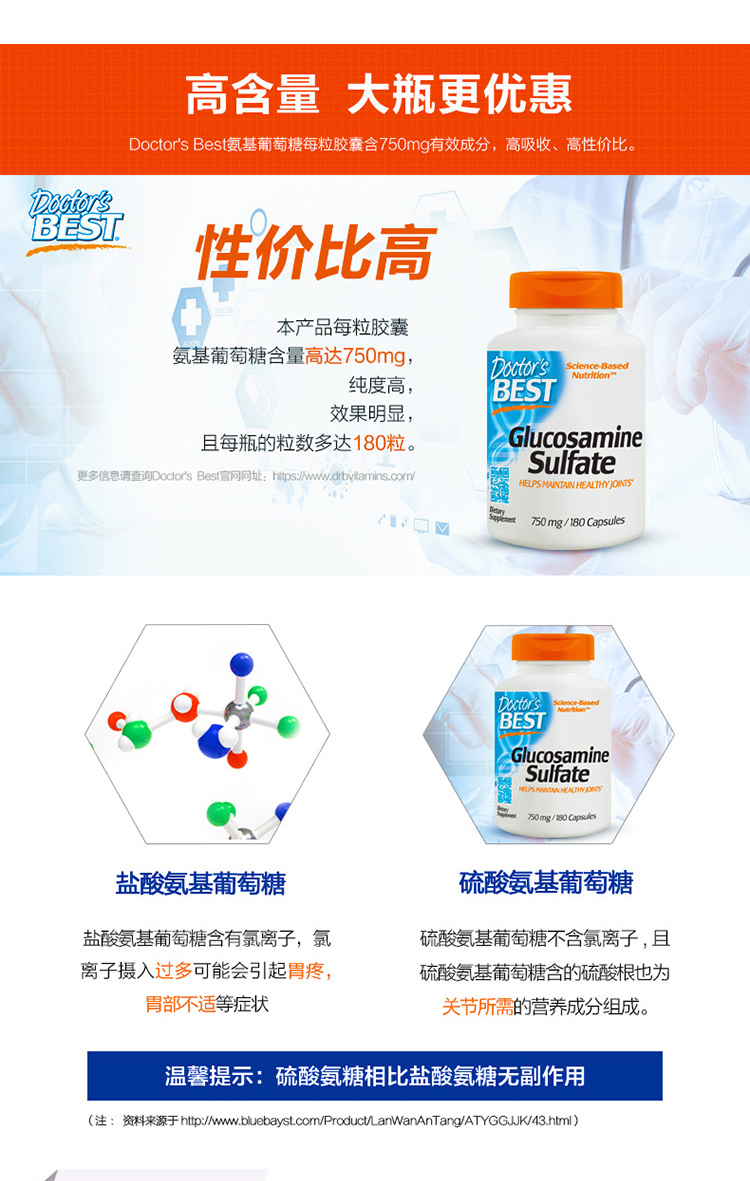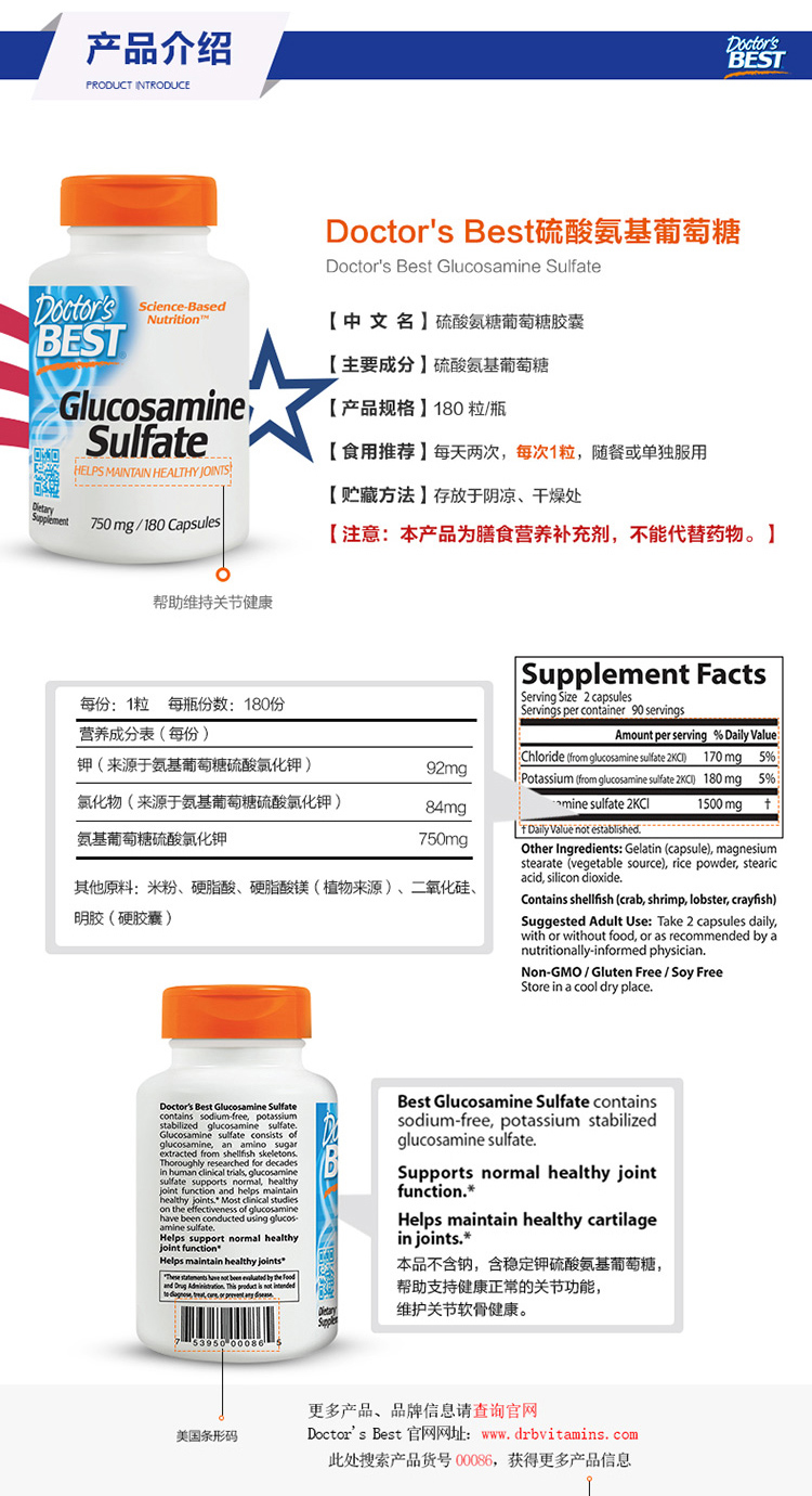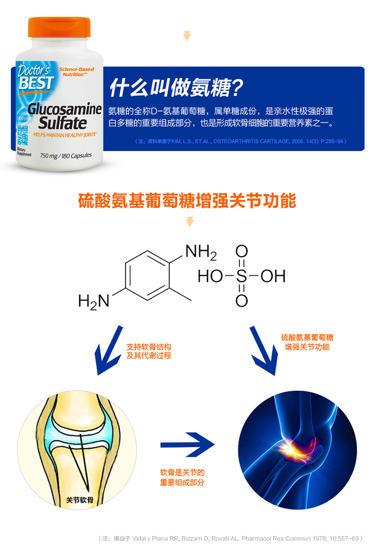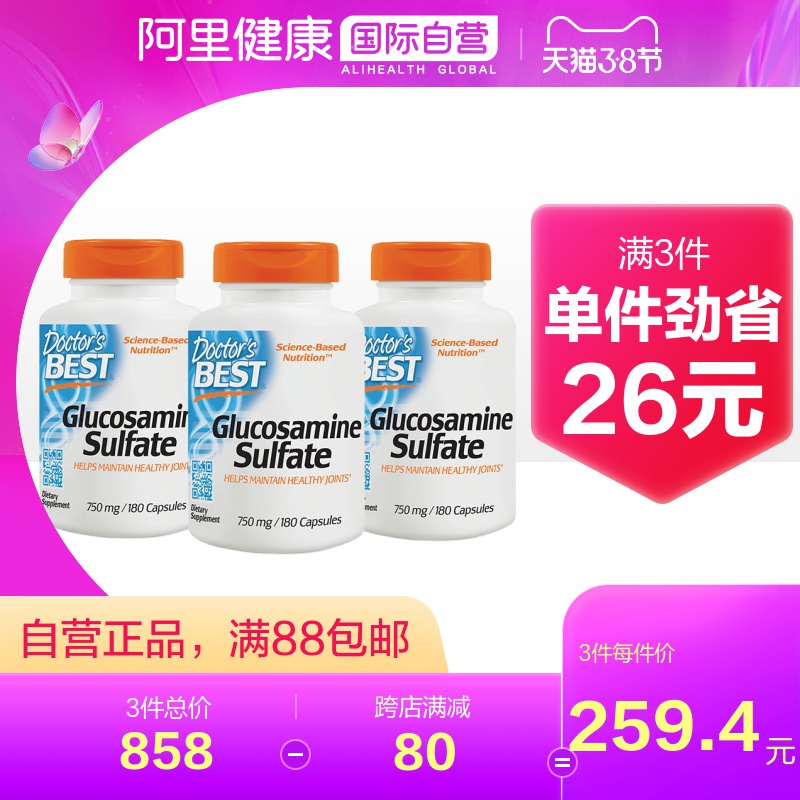Джинда Вейинозан Сульфат сульфат 750 мг180 зерна 3 бутылки для стимулирования регенерации хряща для защиты колена