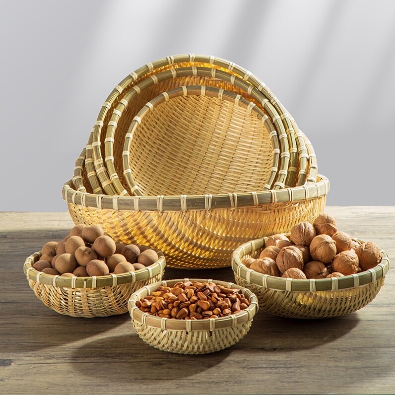 Формула бамбука ручной работы, маленькая бамбуковая корзина круглая полка, Dustpan Restaurant Snack Snack Fruit Snack Disk