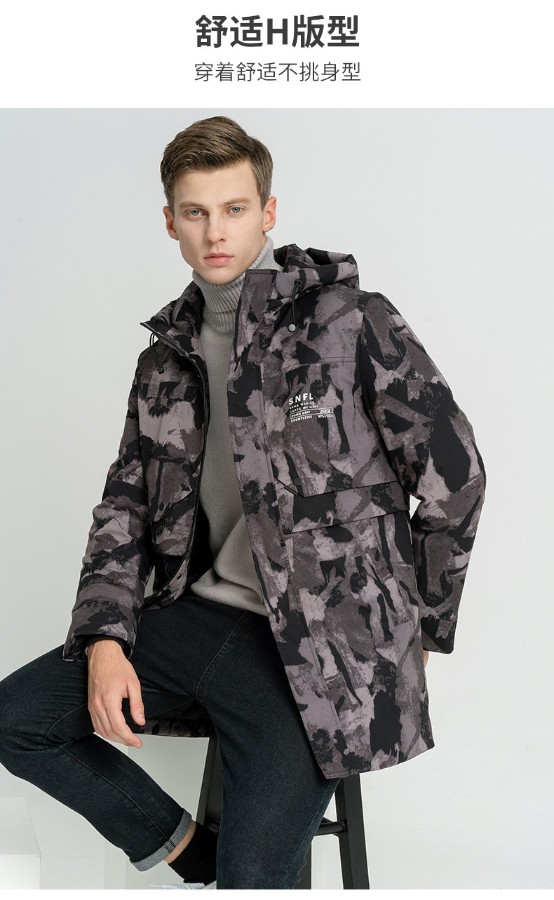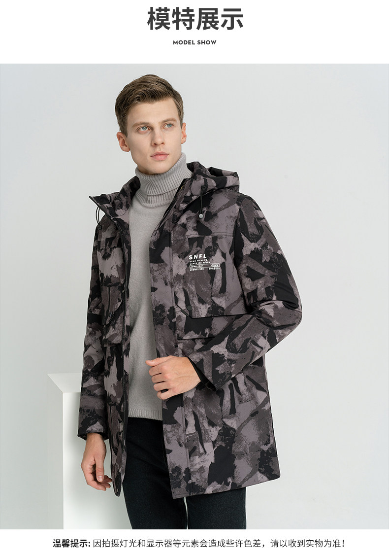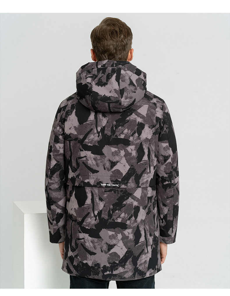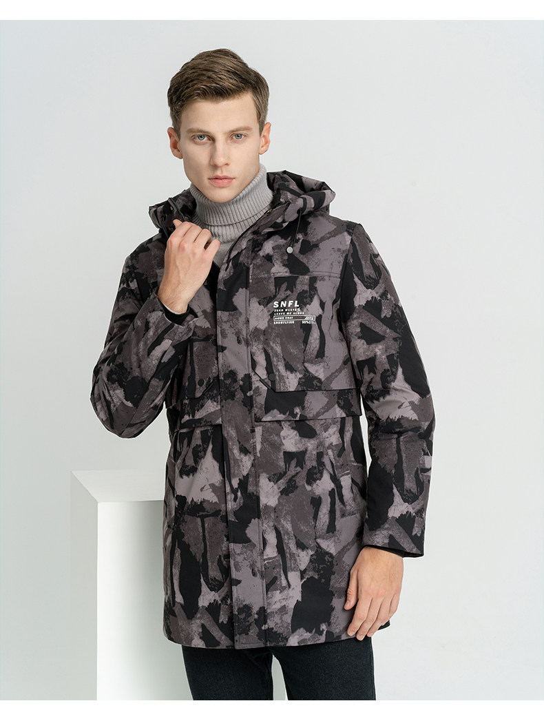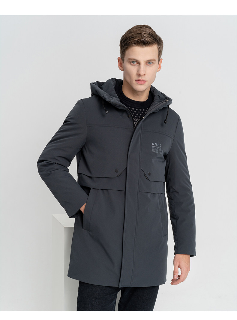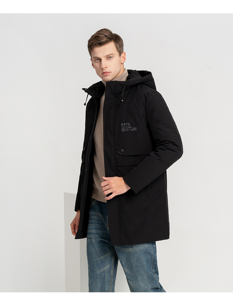 Демисезонный длинный пуховик с капюшоном, средней длины