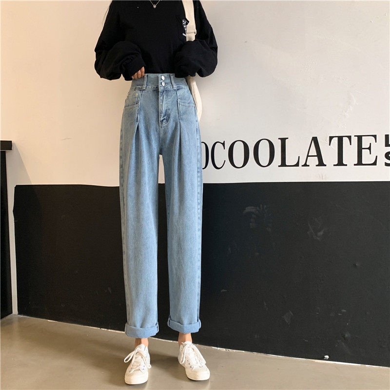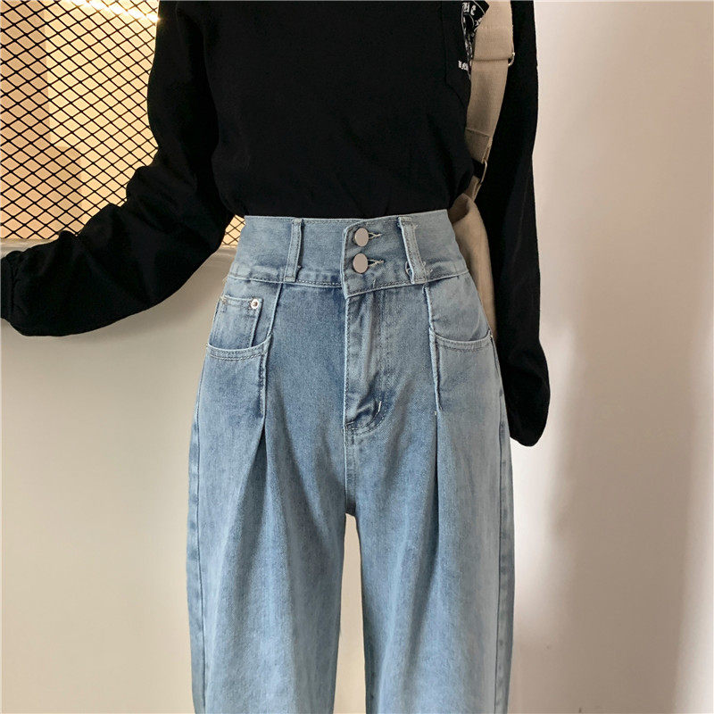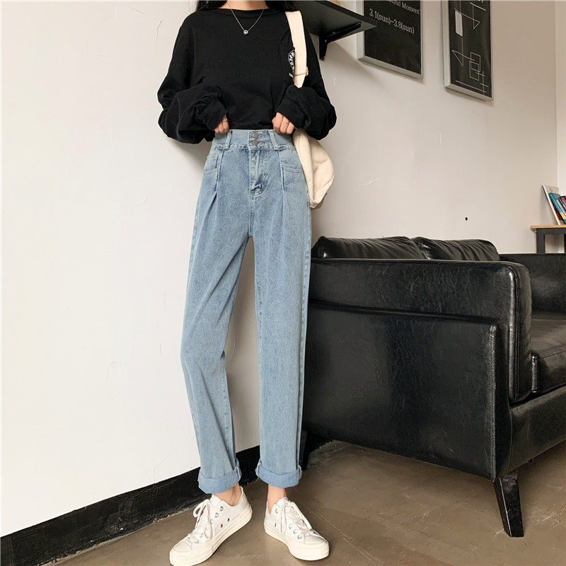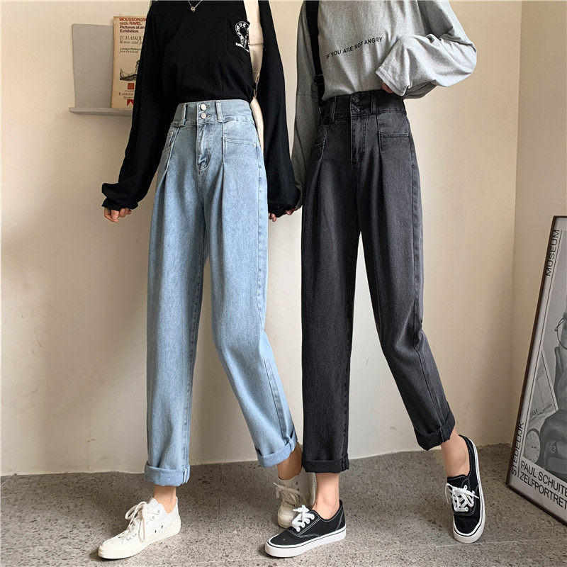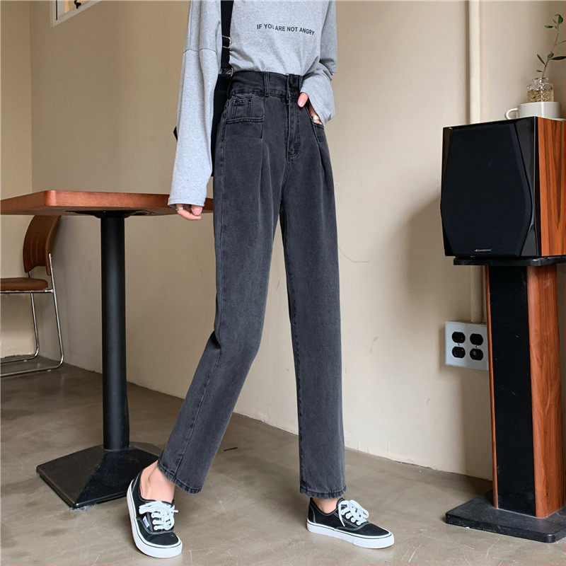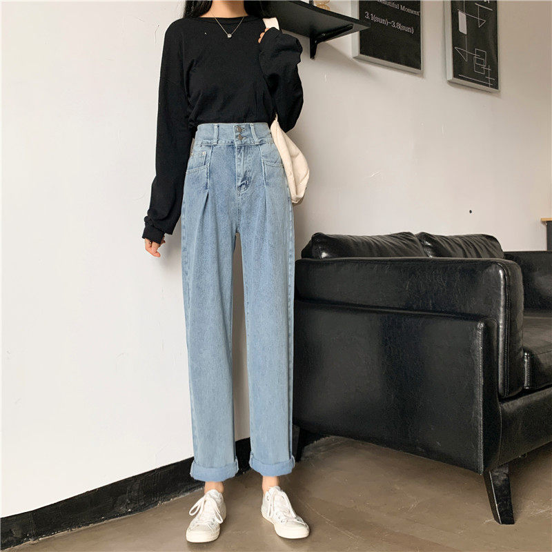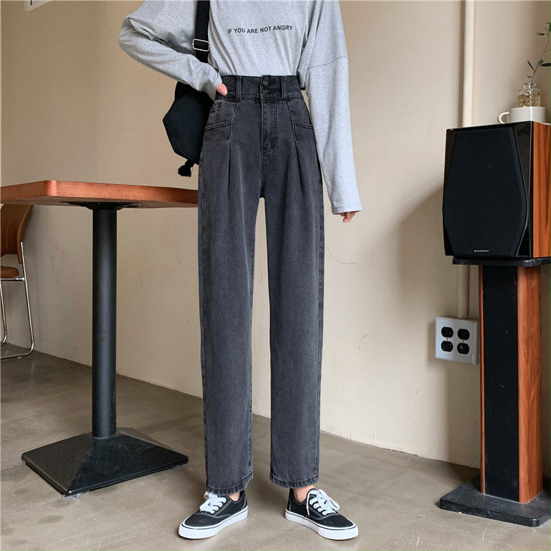 Осенние штаны, приталенные джинсы, свободный прямой крой, высокая талия, большой размер