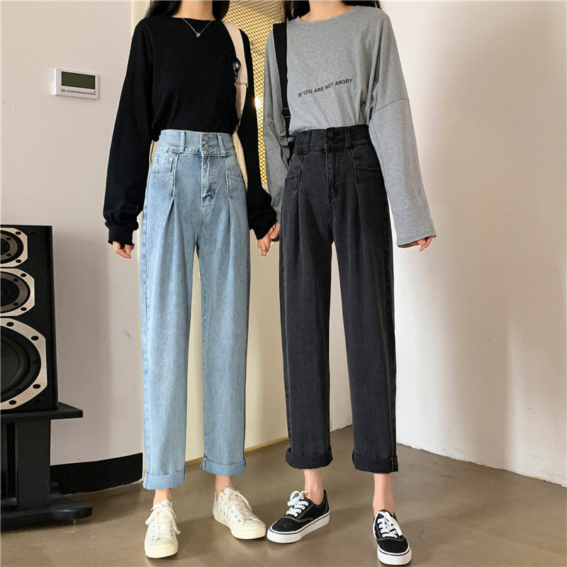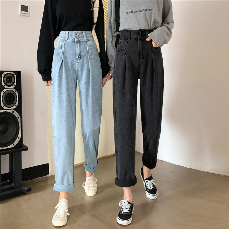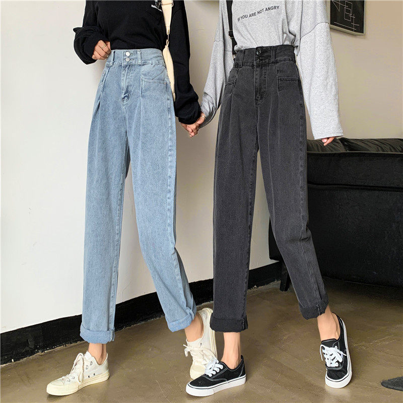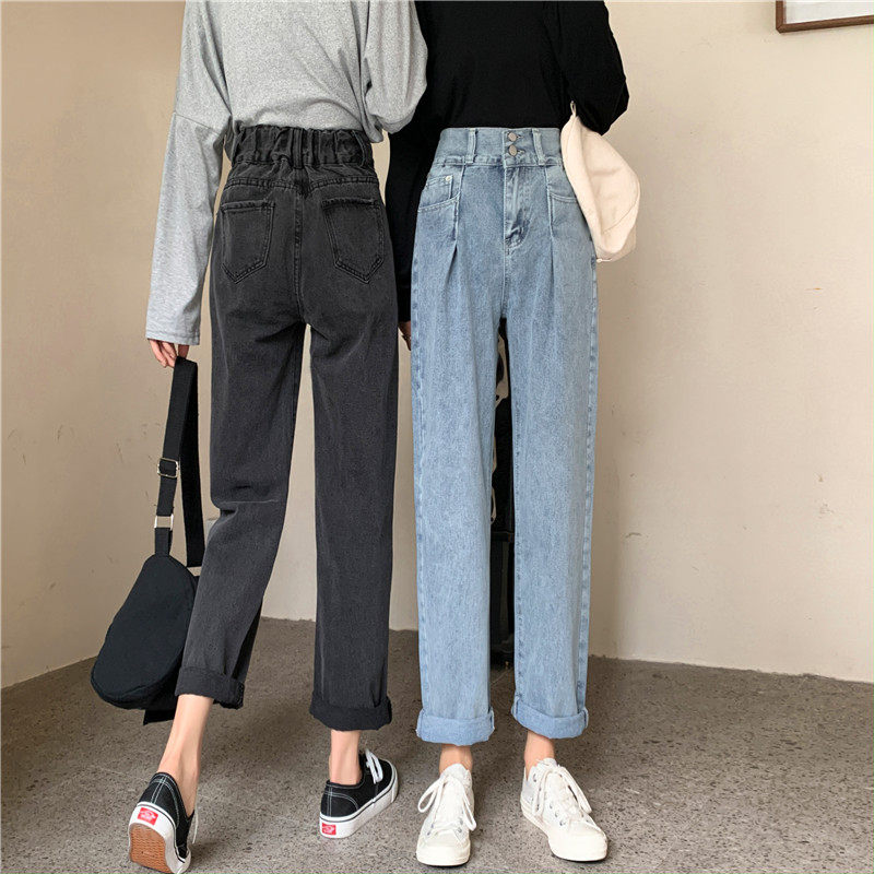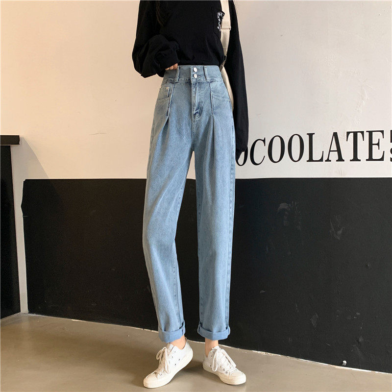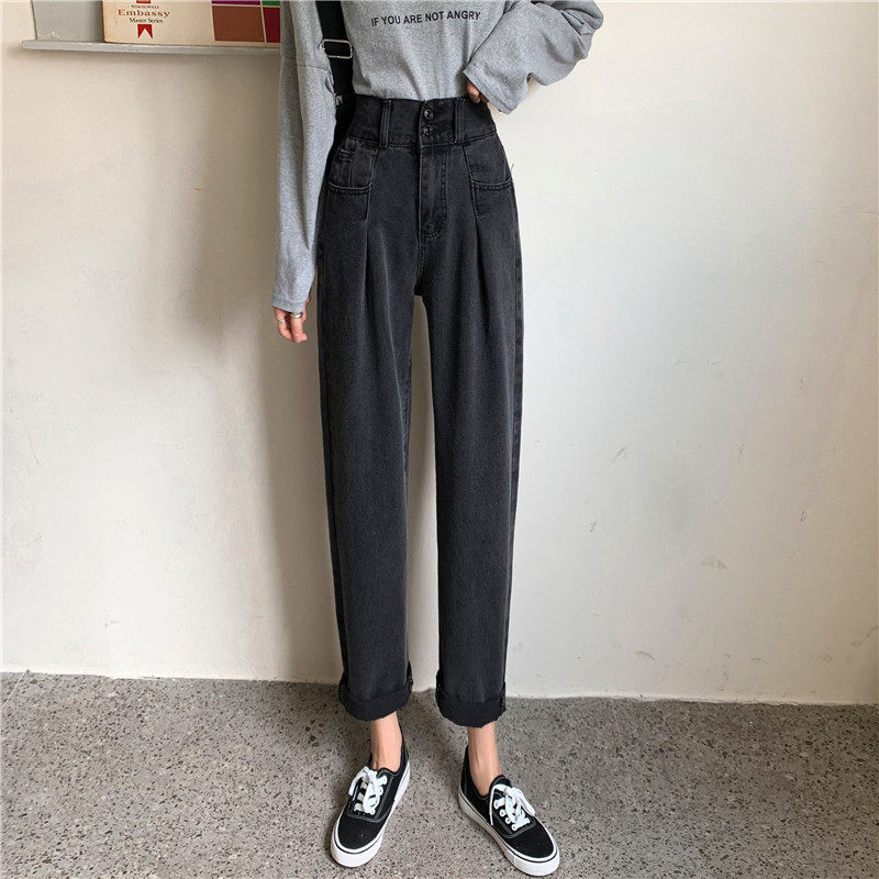 Осенние штаны, приталенные джинсы, свободный прямой крой, высокая талия, большой размер