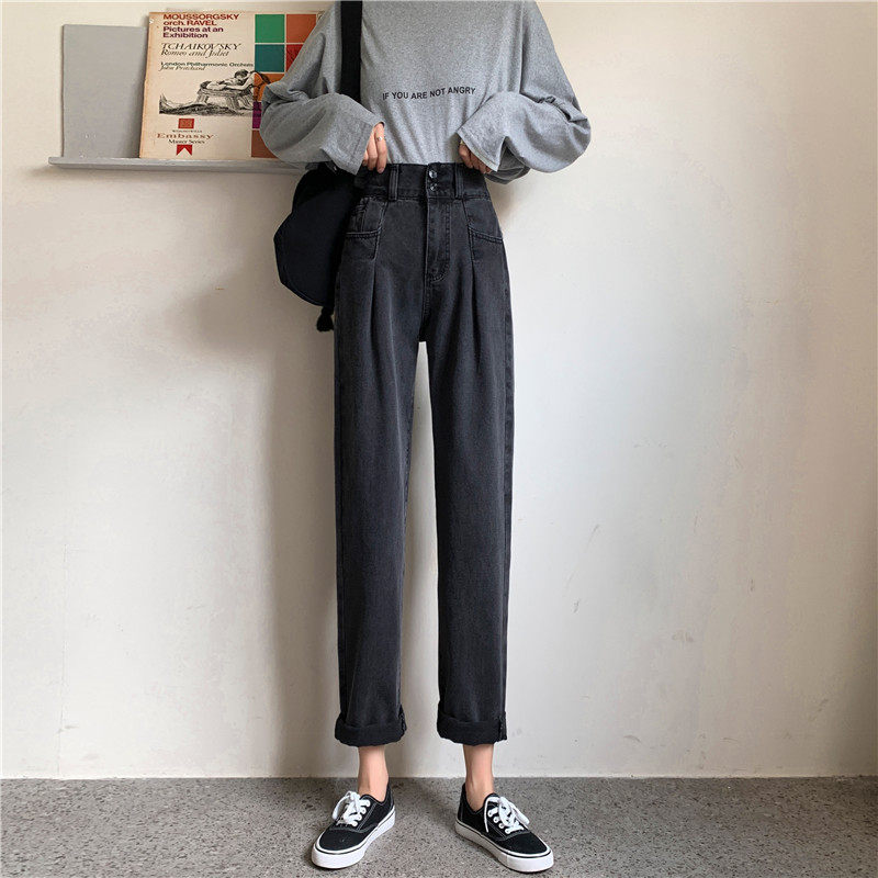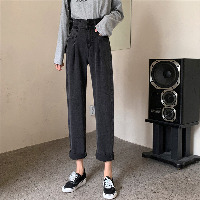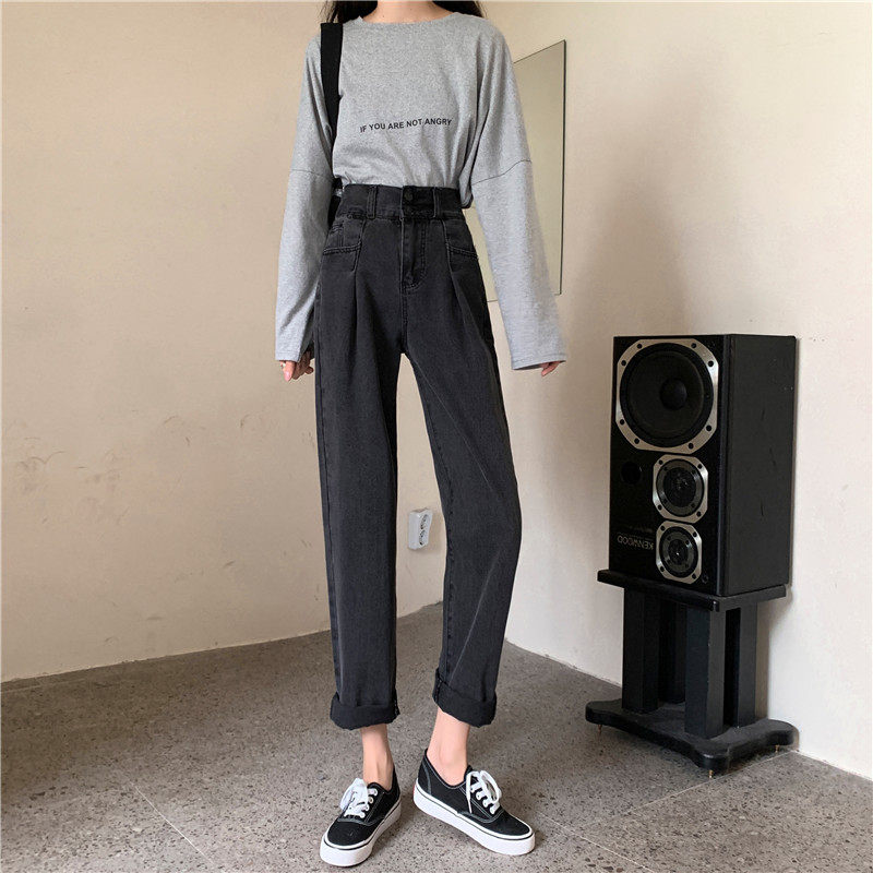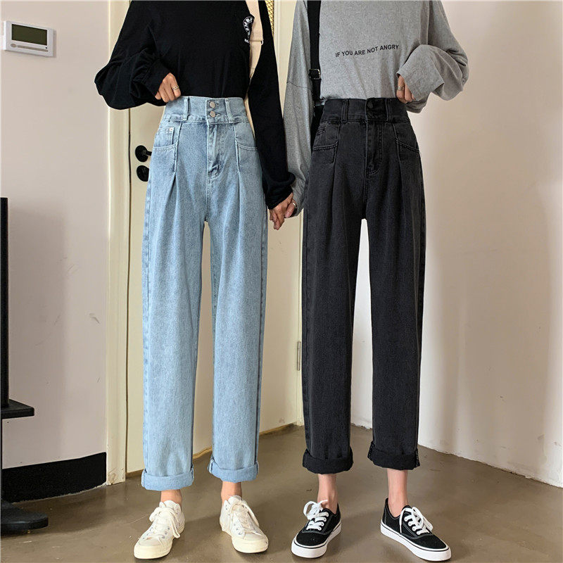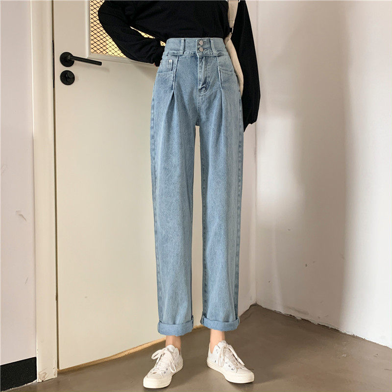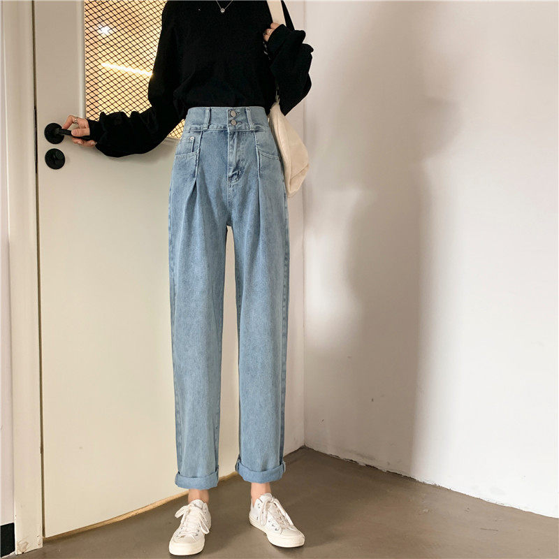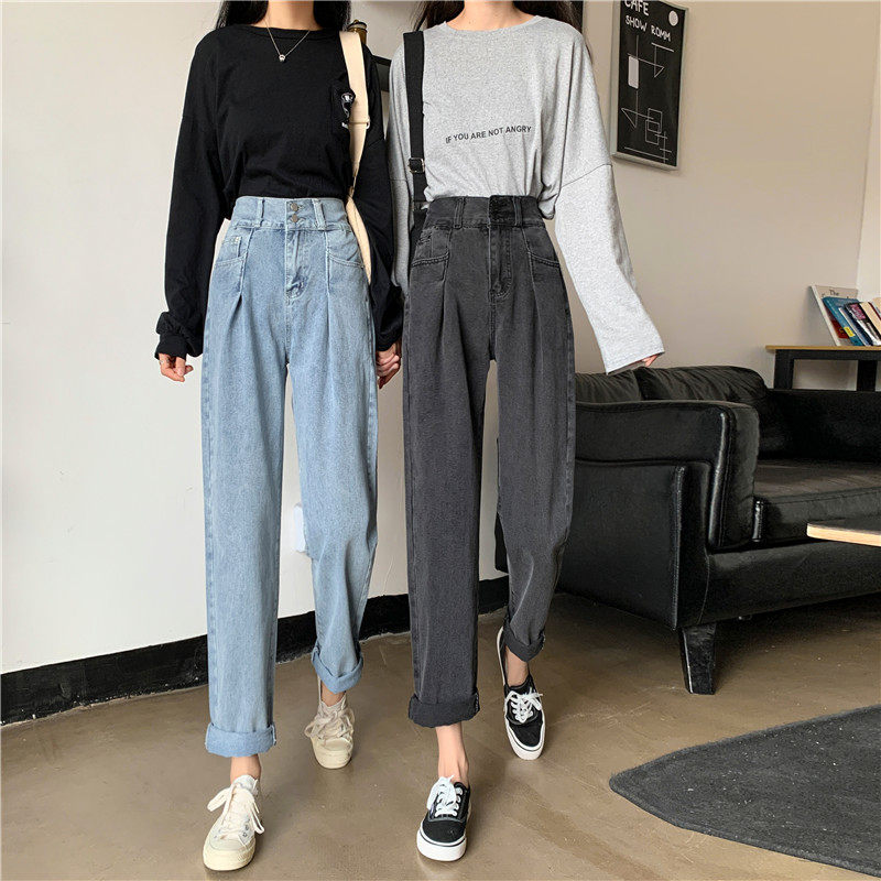 Осенние штаны, приталенные джинсы, свободный прямой крой, высокая талия, большой размер