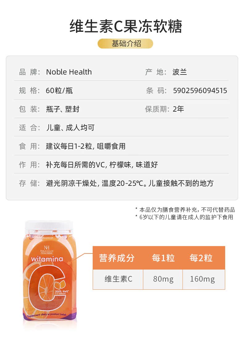 Noble Health Vitamin C Jelly Soft Sofee Яркая кожа против лимонного аромата для взрослых детей дополнение к капсуле VC60