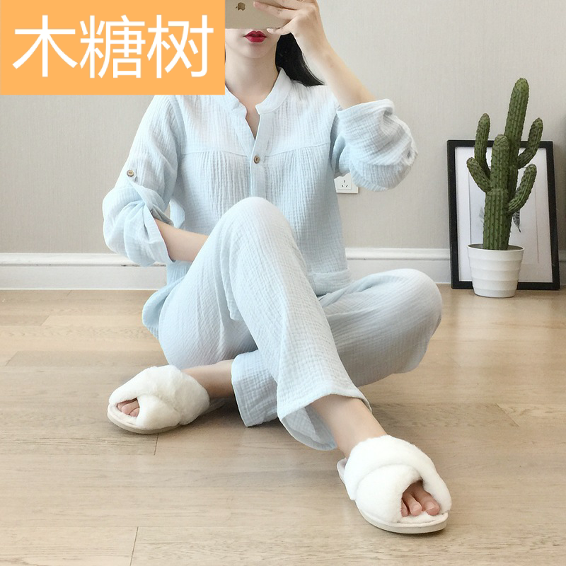 Летняя осенняя пижама, тонкий марлевый лонгслив для отдыха, из хлопка и льна
