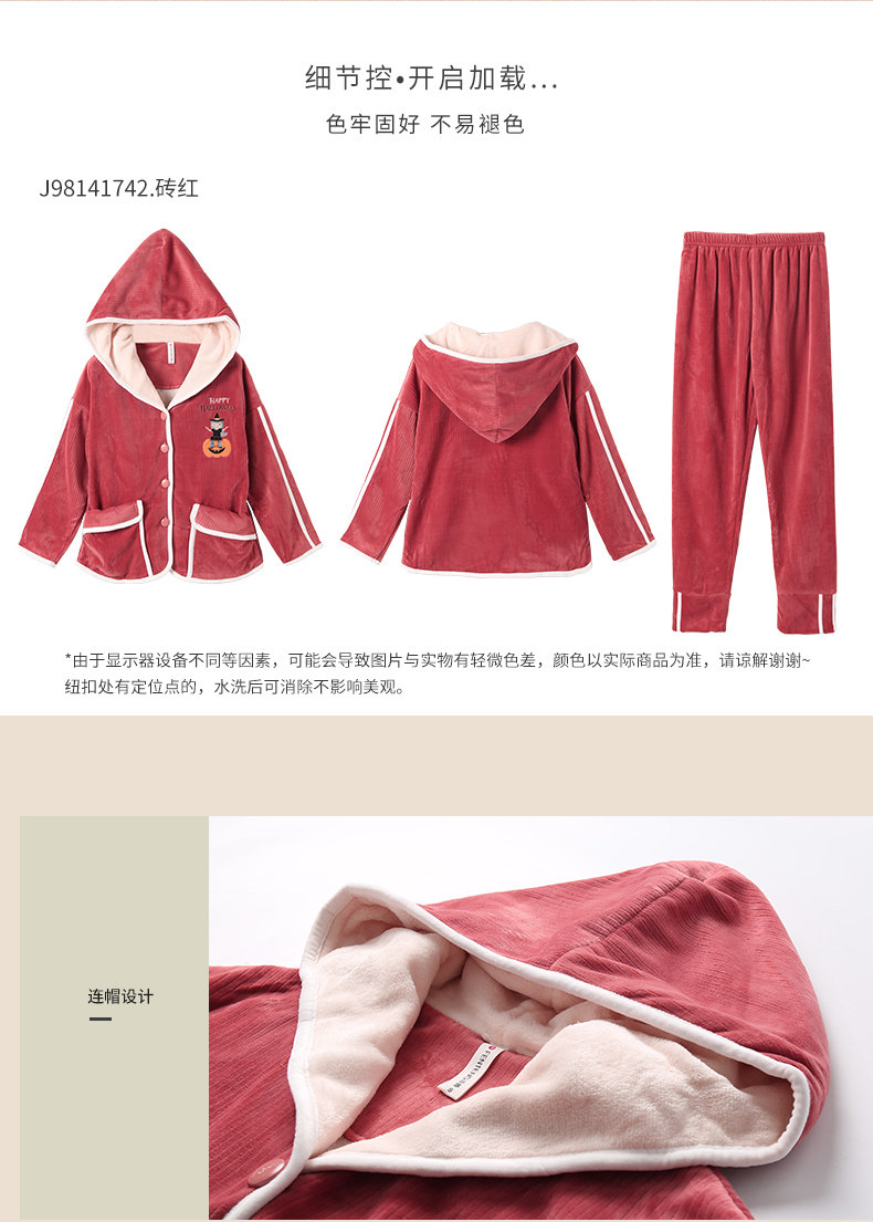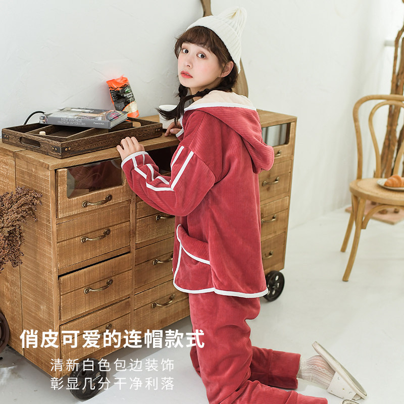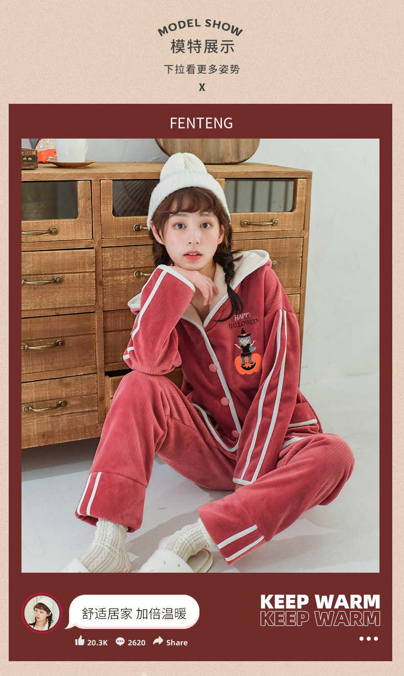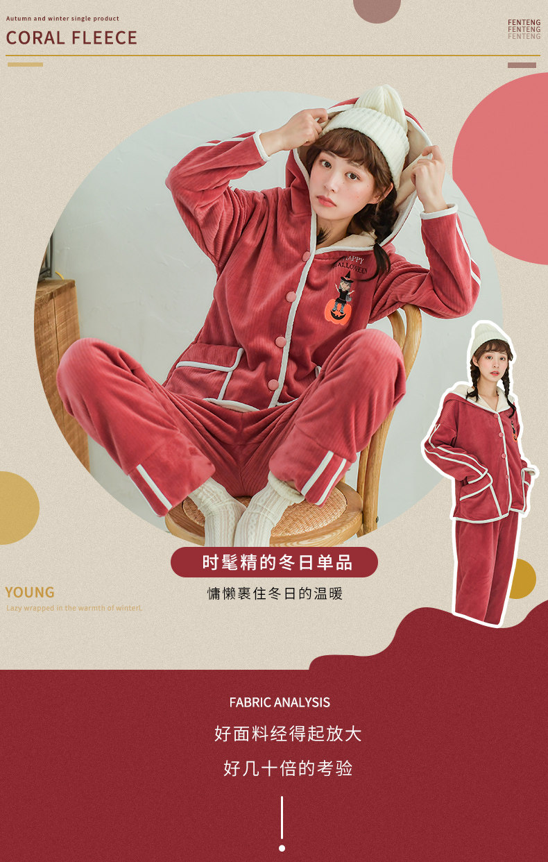 芬腾 Коралловая бархатная демисезонная удерживающая тепло пижама, фланелевая толстовка с капюшоном, комплект