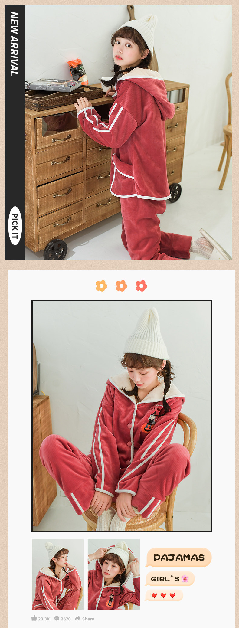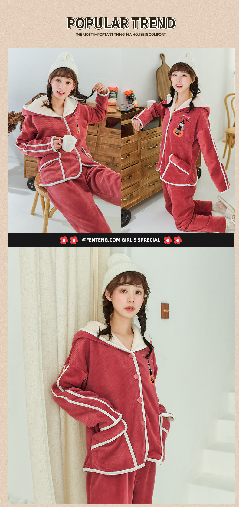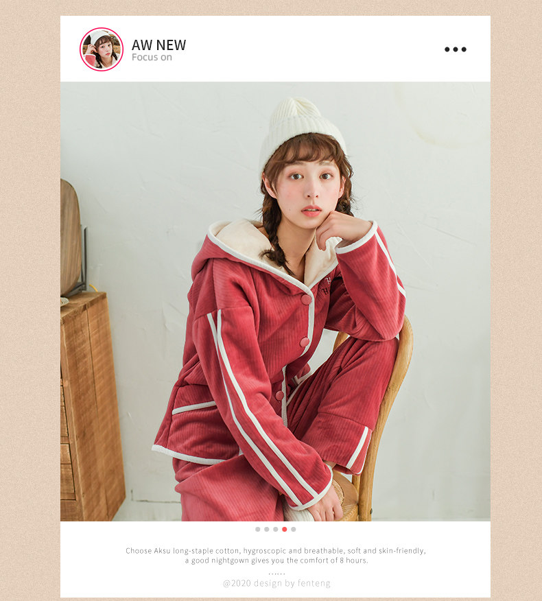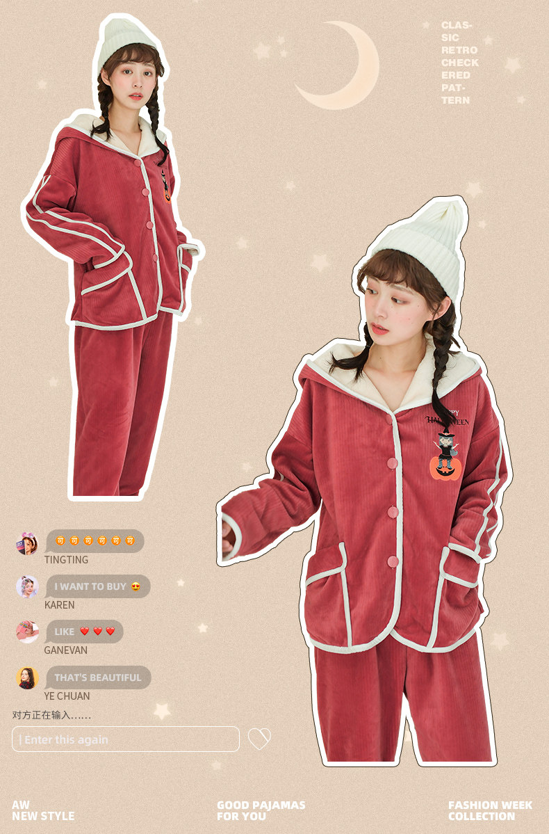 芬腾 Коралловая бархатная демисезонная удерживающая тепло пижама, фланелевая толстовка с капюшоном, комплект