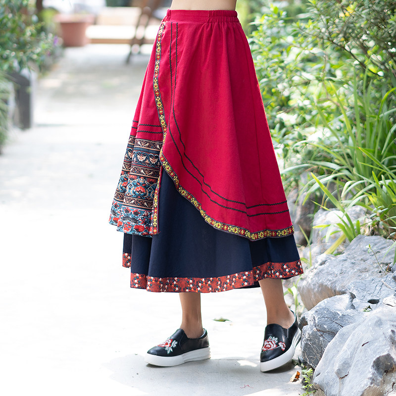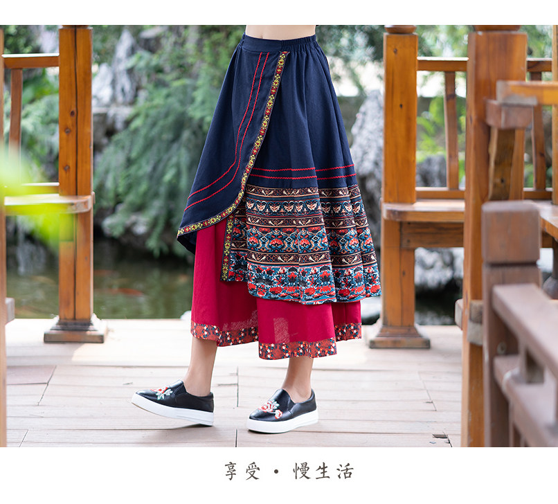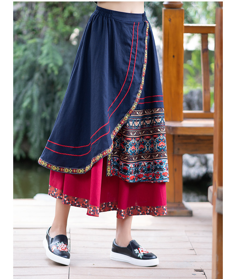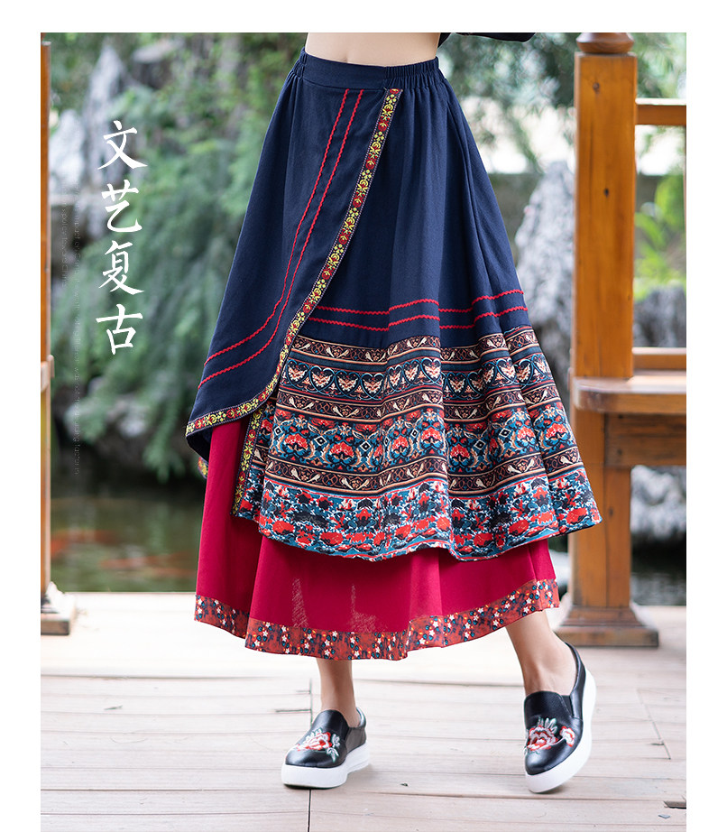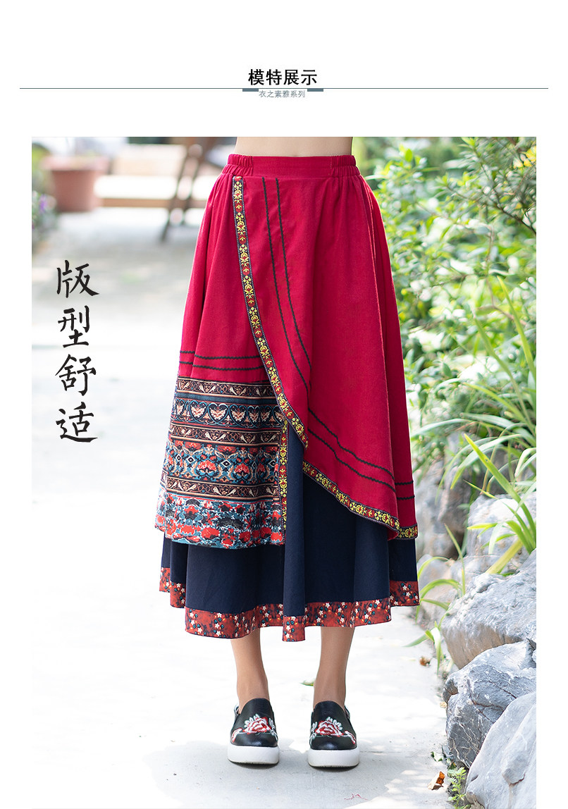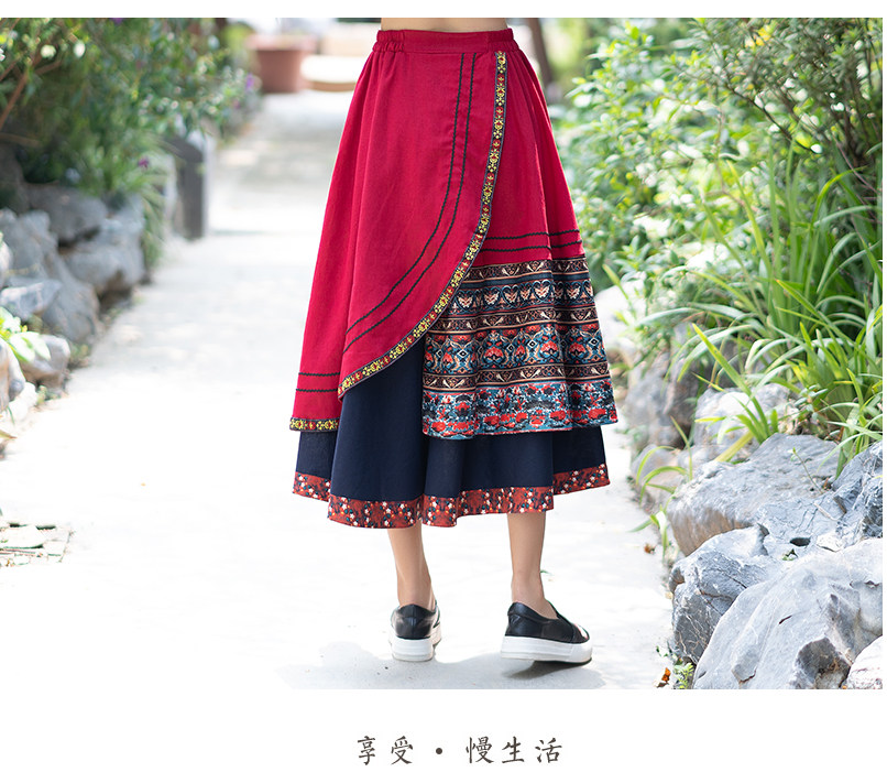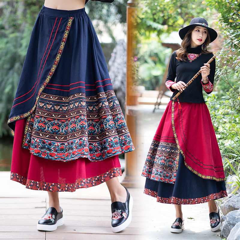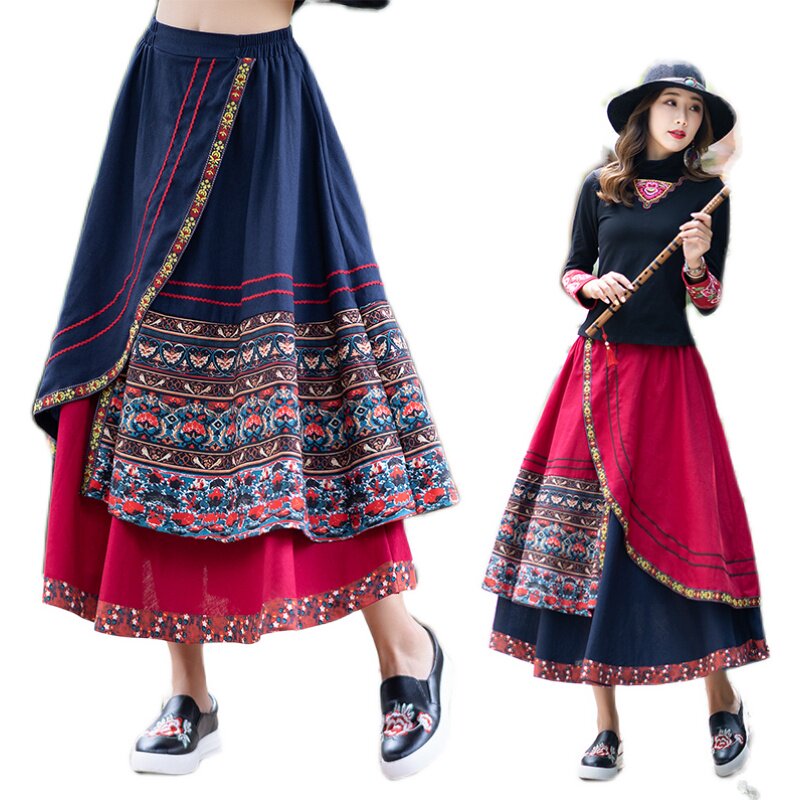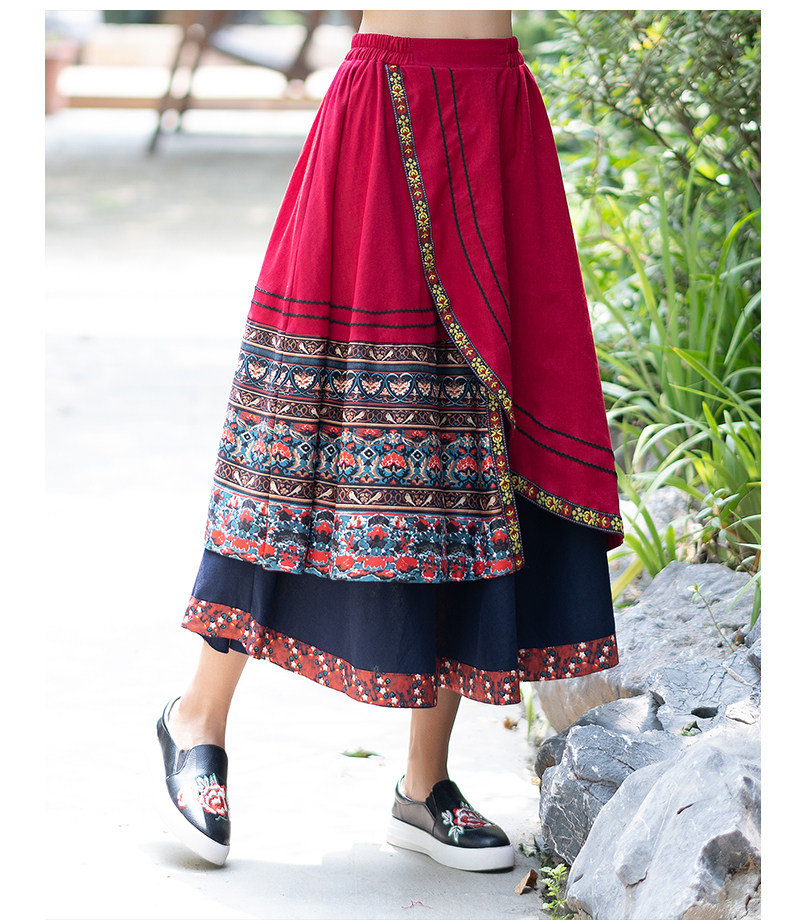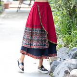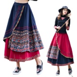 Демисезонная длинная этническая ретро юбка, средней длины, этнический стиль