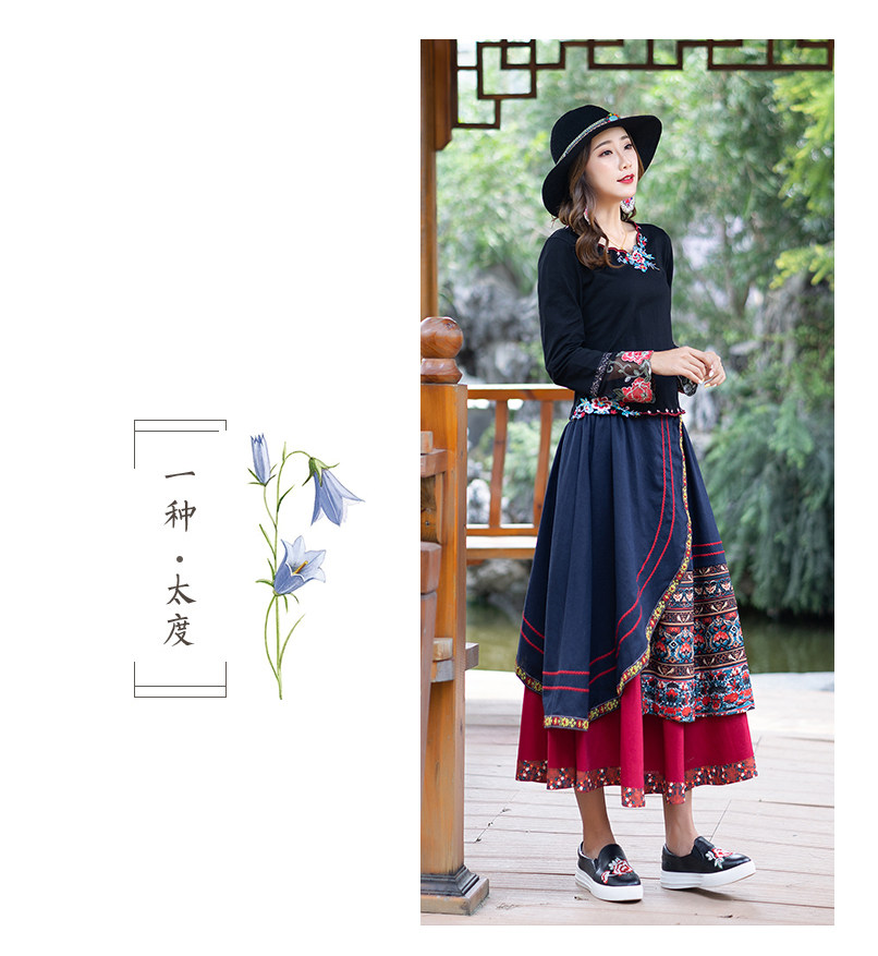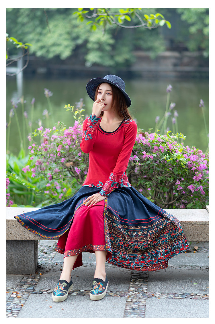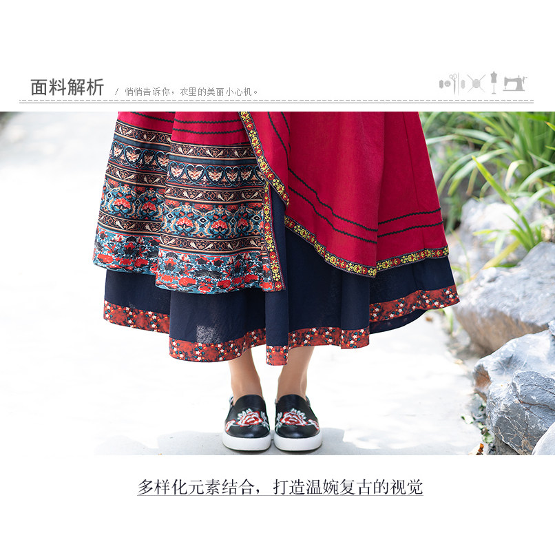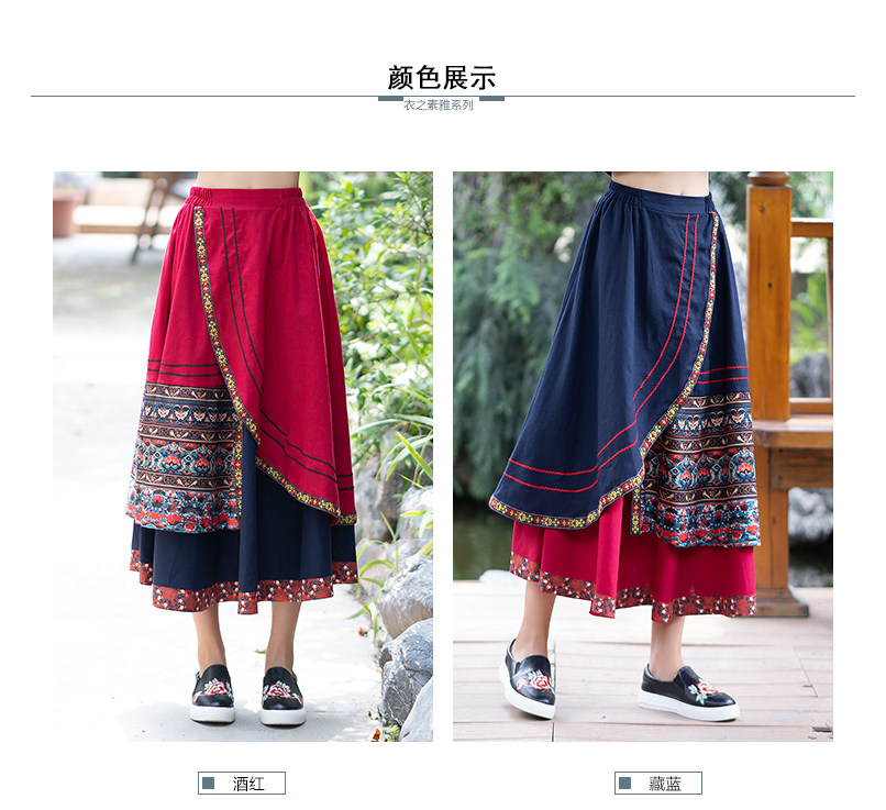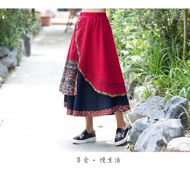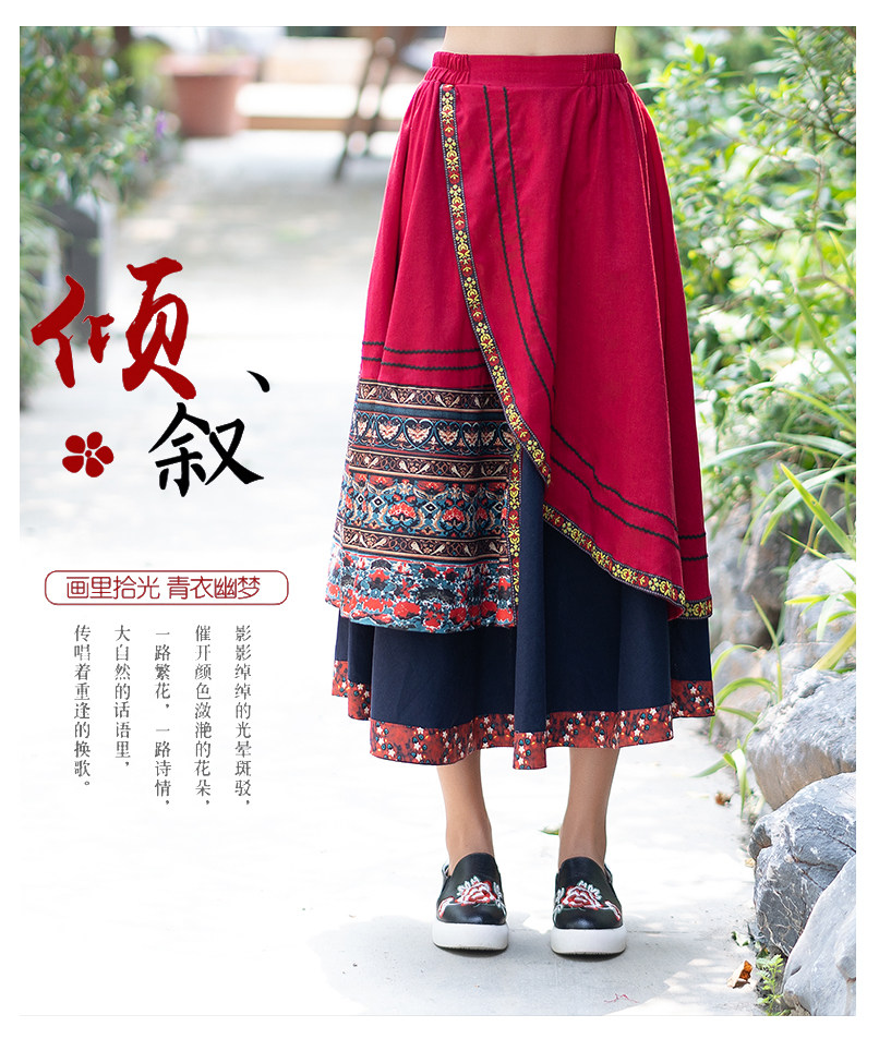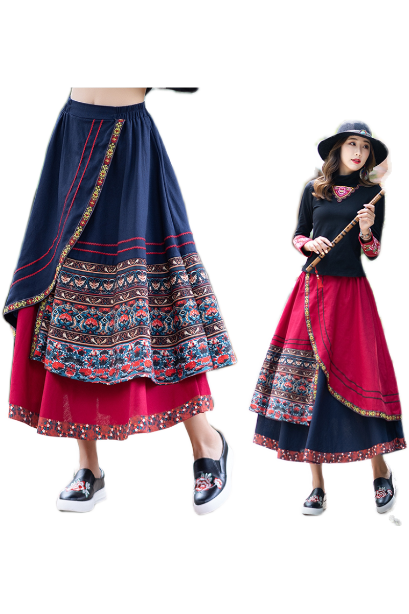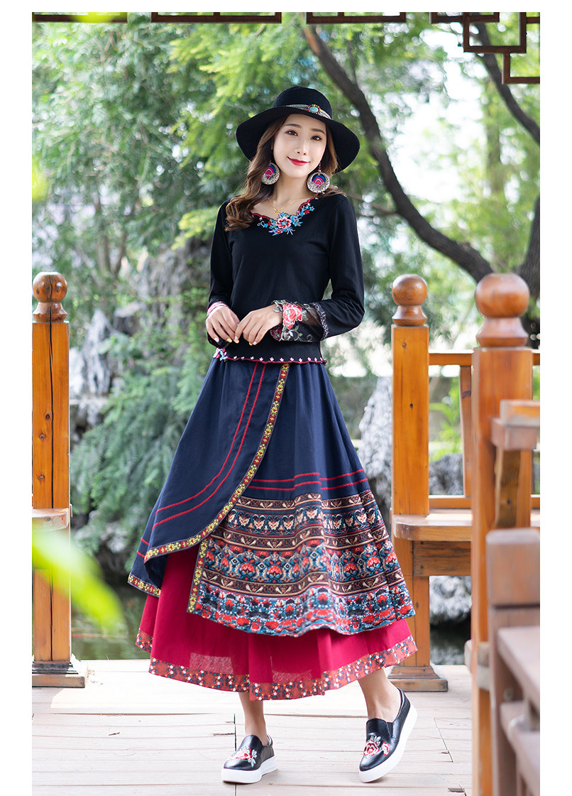 Демисезонная длинная этническая ретро юбка, средней длины, этнический стиль