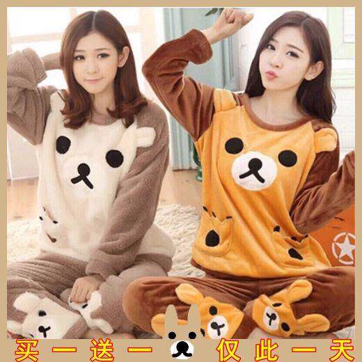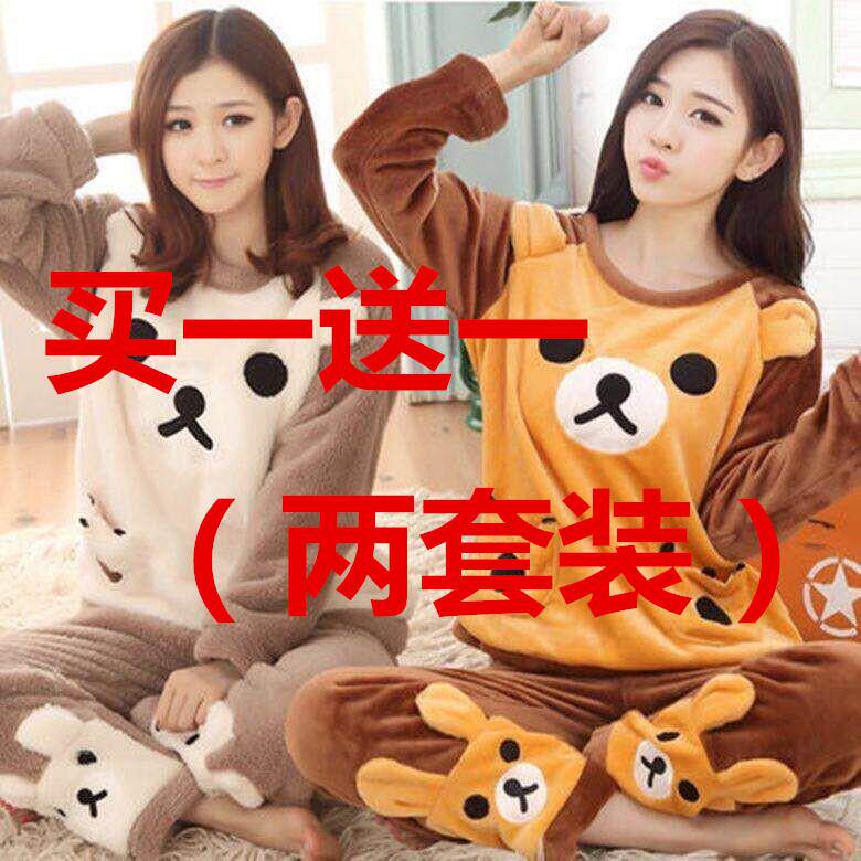 Коралловая бархатная осенняя милая удерживающая тепло фланелевая пижама, демисезонный комплект для школьников и студентов, в корейском стиле