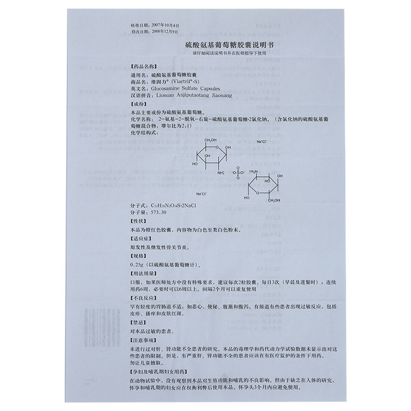 维固力 Viartril-S-аминсульфат сульфат глюкоза капсула 0,25 г*10 зерна/ящик остеоартрит