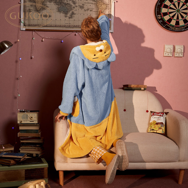 Демисезонная пижама, коралловый бархатный банный халат, с медвежатами