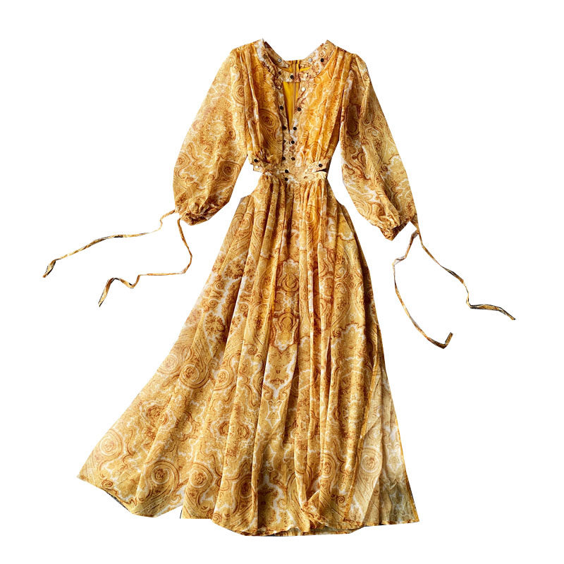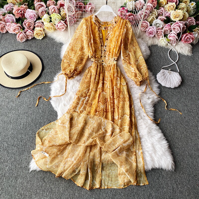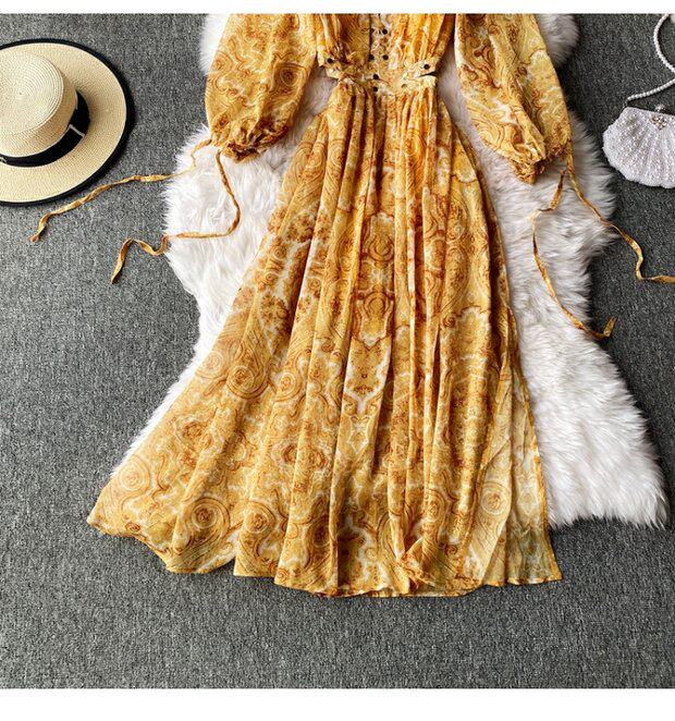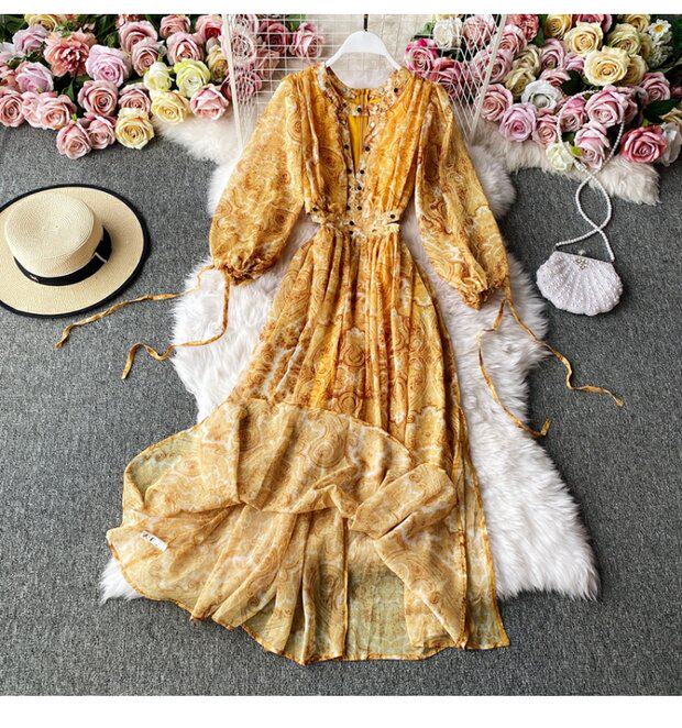 Шифоновое осеннее пляжное платье, длинная юбка, стиль бохо