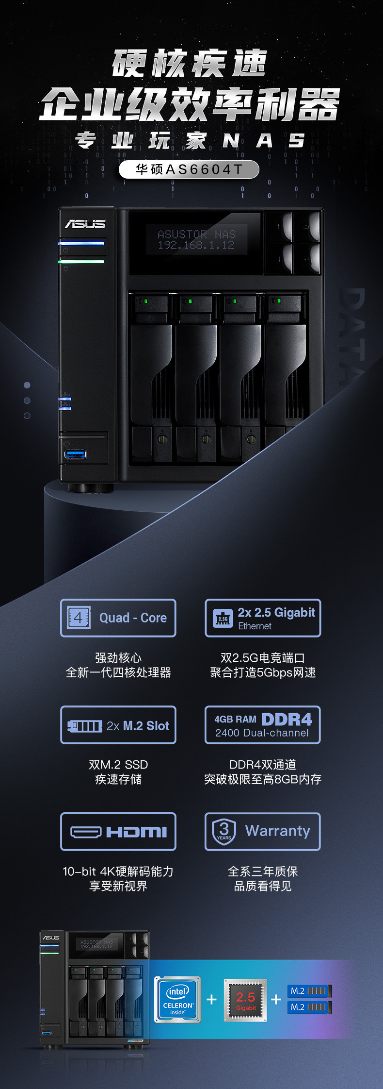 ASUS AS6604T Четыре диска Double 2.5G Port NAS Сервер Сервер Сервиса Семейства Персональная частная облачная пластина беспроводная локальная локальная сеть Обмен данными основной платы жесткий диск