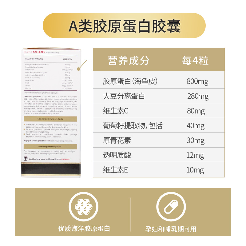 Noble Health Collagen Beauty Capsule Capsule 90 Deep -Sea Cod отбеливание кожи анти -витамин С