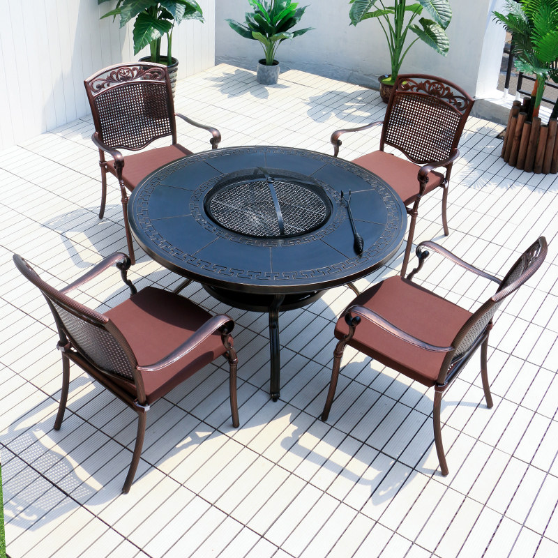 Дворский стол и стул на открытом воздухе двор барбекю Все -алюминиевая садовая железа мебель на открытом воздухе на гриле на гриле печи Комбинация стола для барбекю
