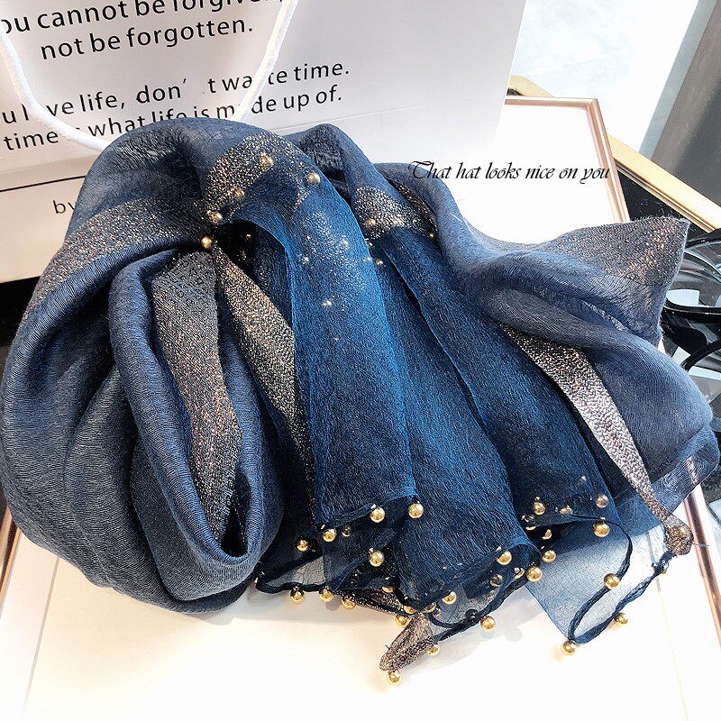 Звездное небо, шелковый тонкий шарф, бусины, в корейском стиле, новая коллекция