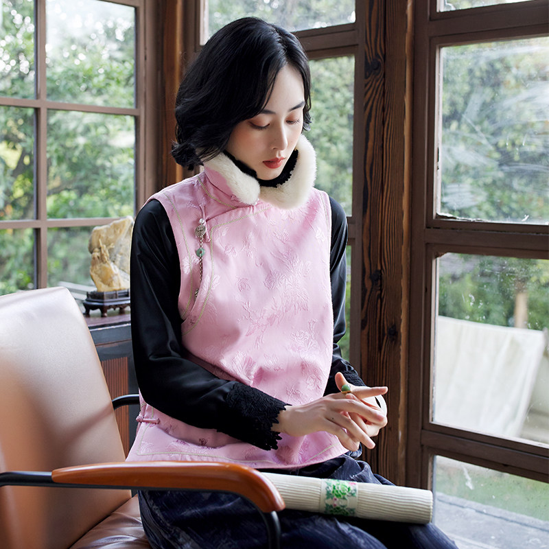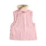 Демисезонный ретро розовый удерживающий тепло жилет, облегающий крой, китайский стиль