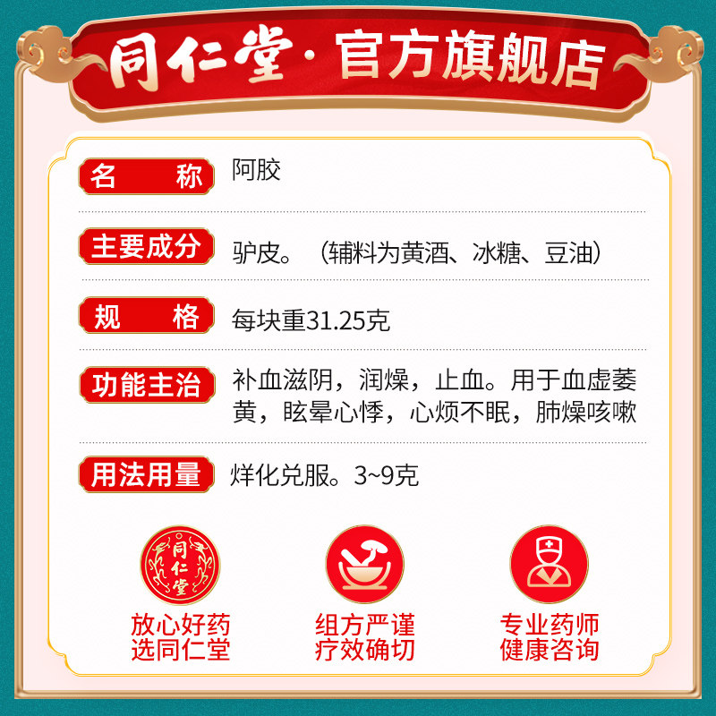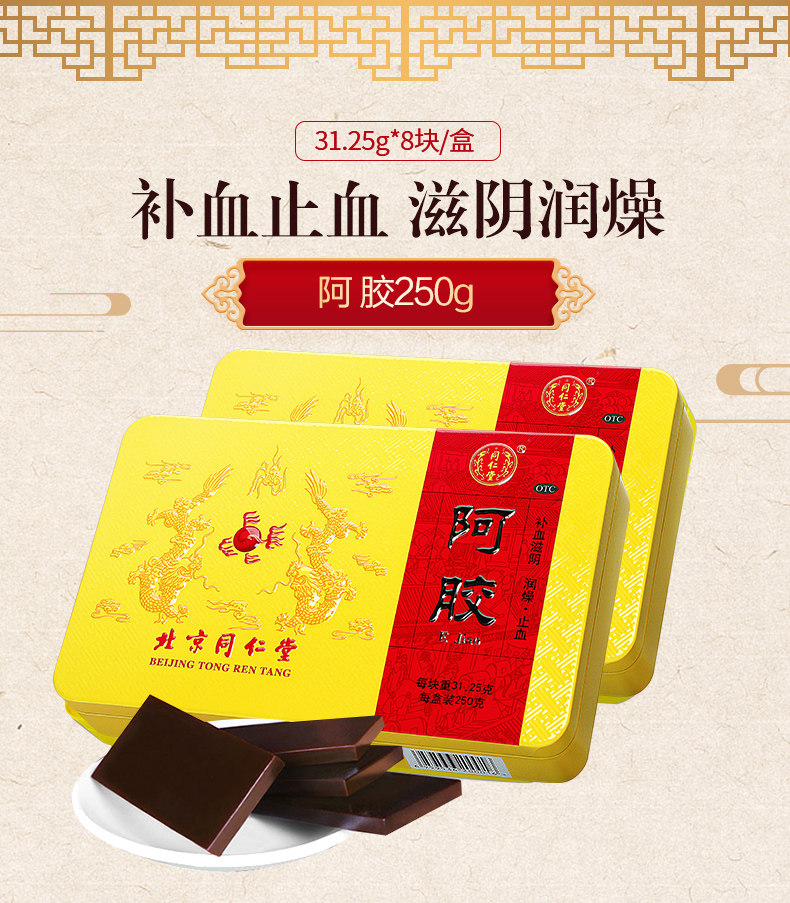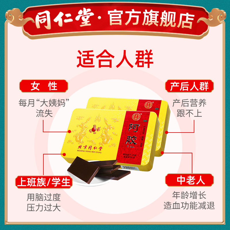同仁堂 Флагманский магазин ejiao block ejiao ejiao cake 250g Qi питательская кровь, кровь, кровь, кровь, ци и дефицит крови девушку