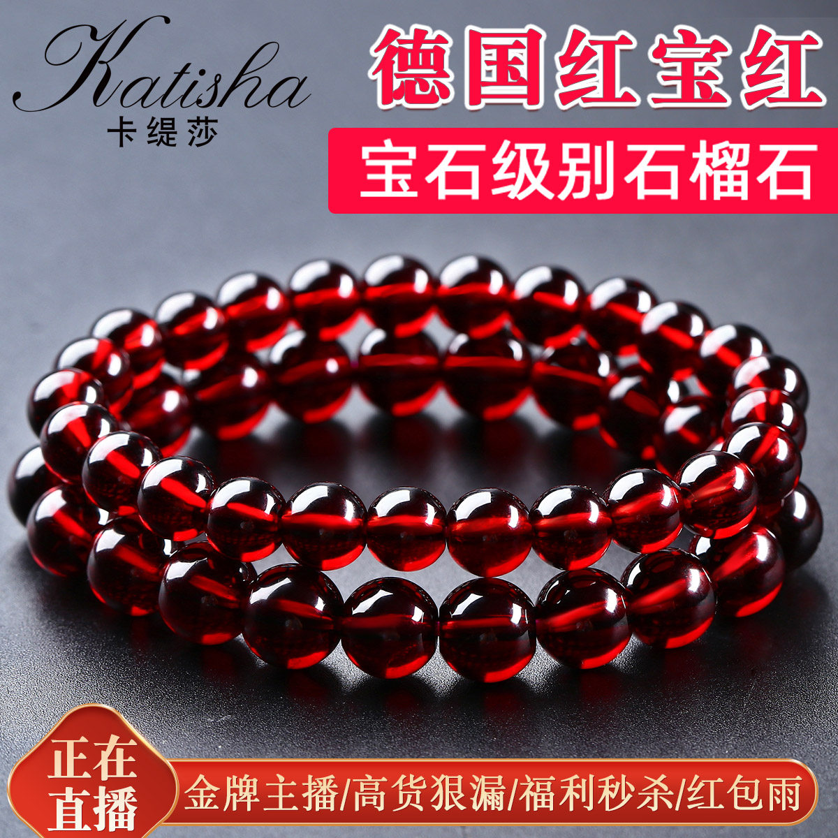 卡缇莎 Рубиновый красный браслет из кварца из граната, ювелирное украшение