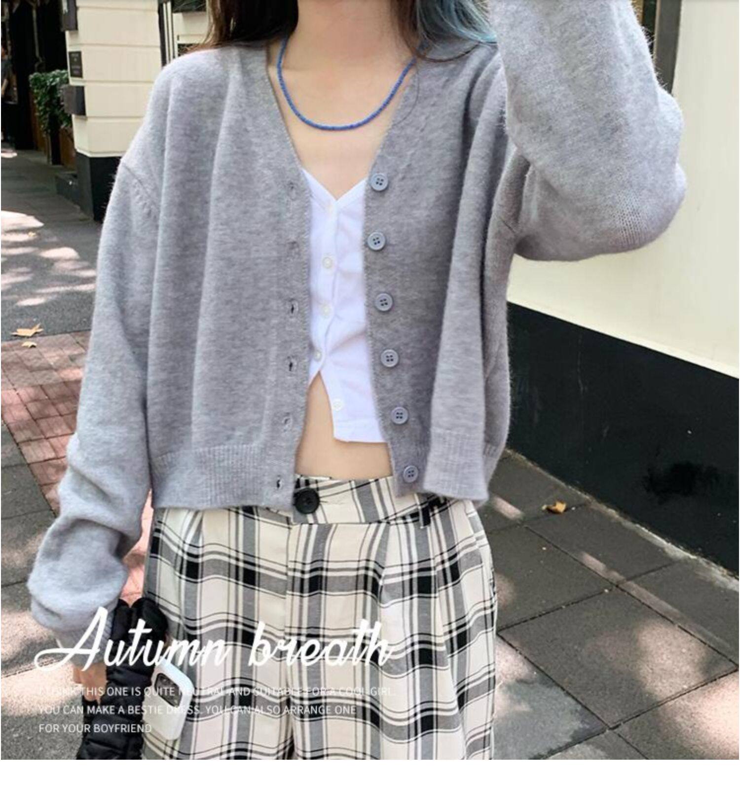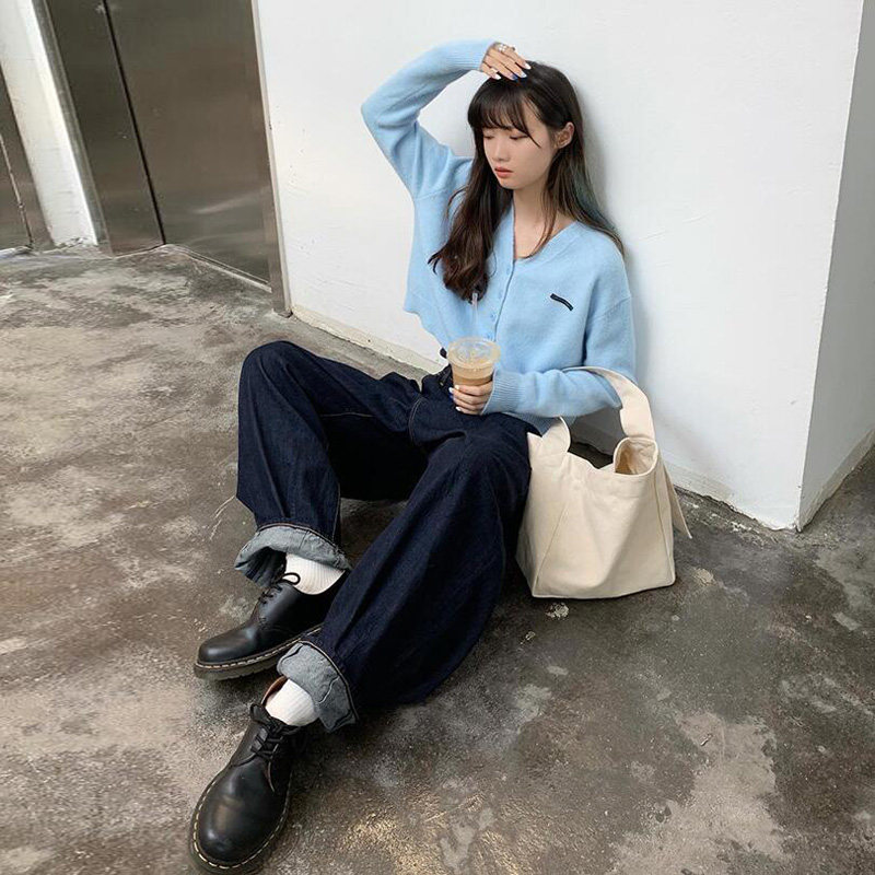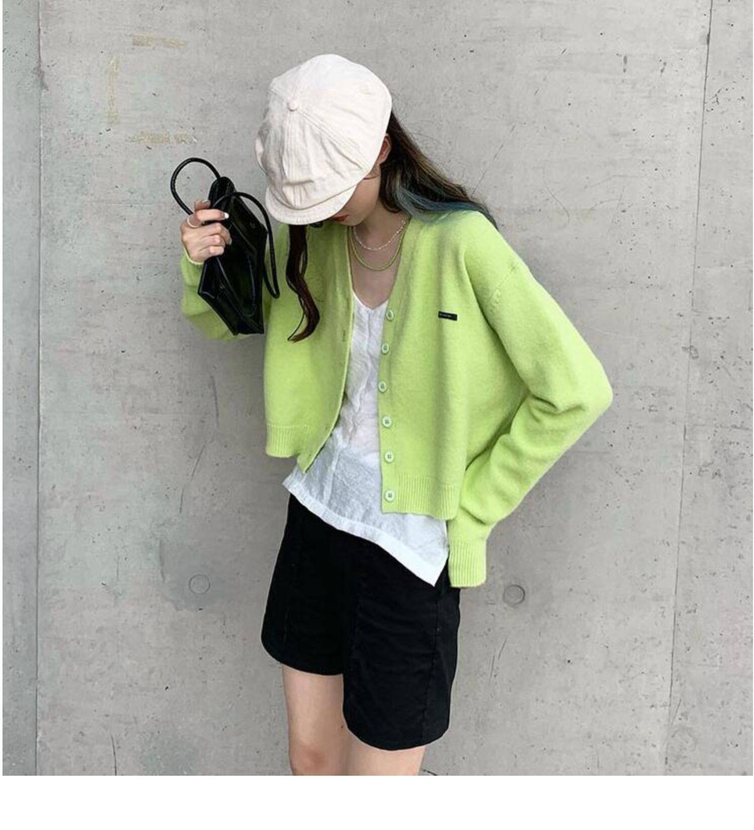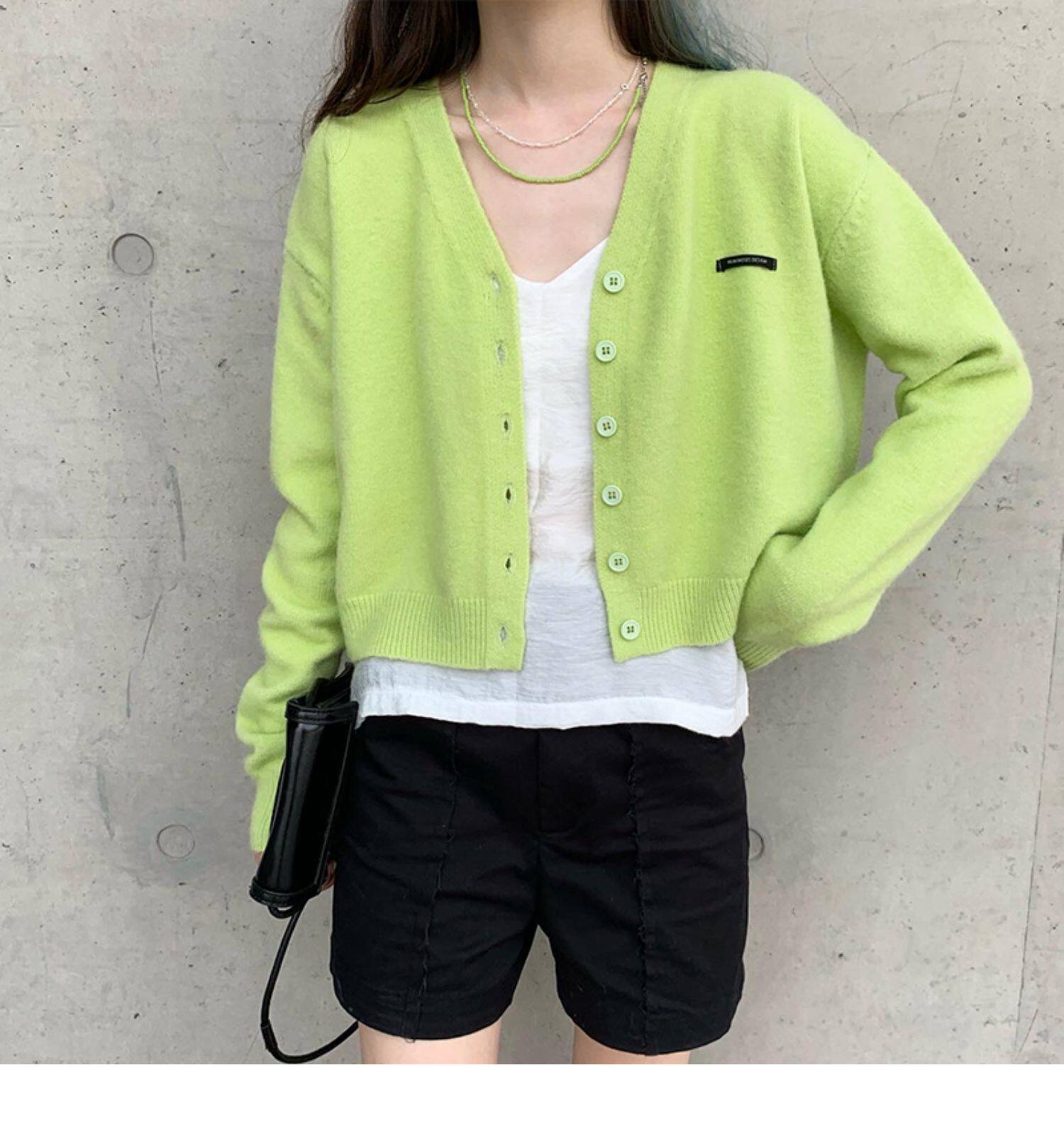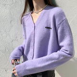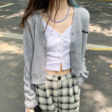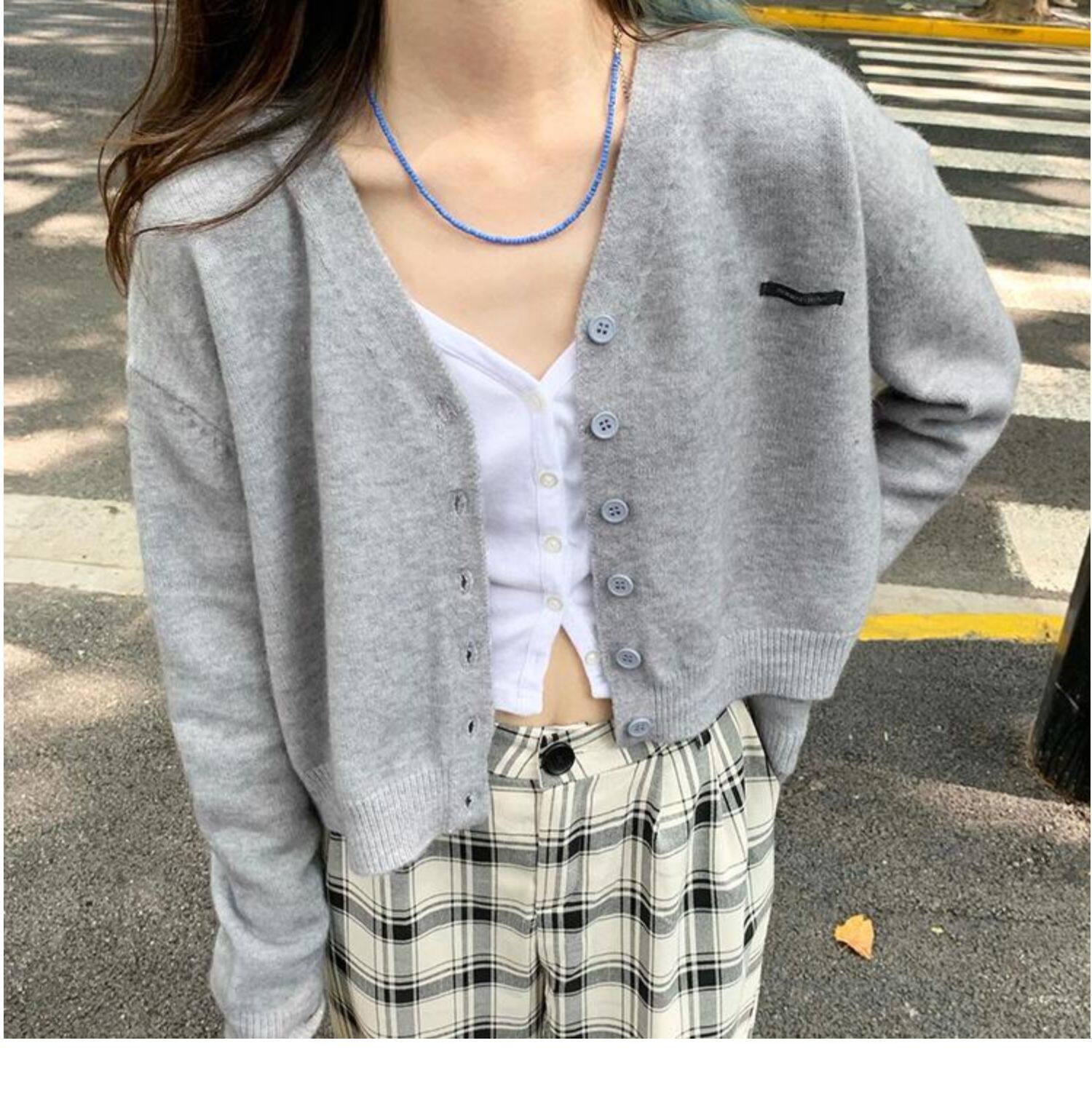 Кардиган, брендовый свитер, короткая лазурная трикотажная куртка, французский стиль, подходит для подростков, V-образный вырез