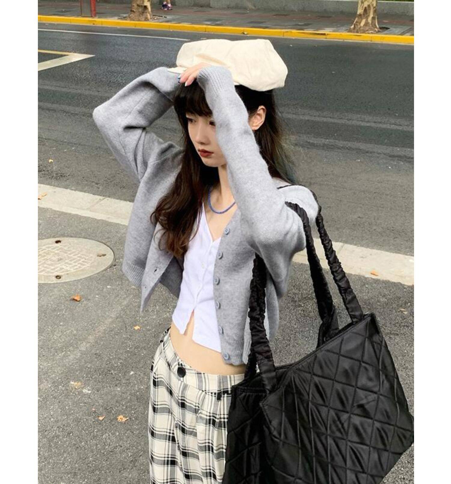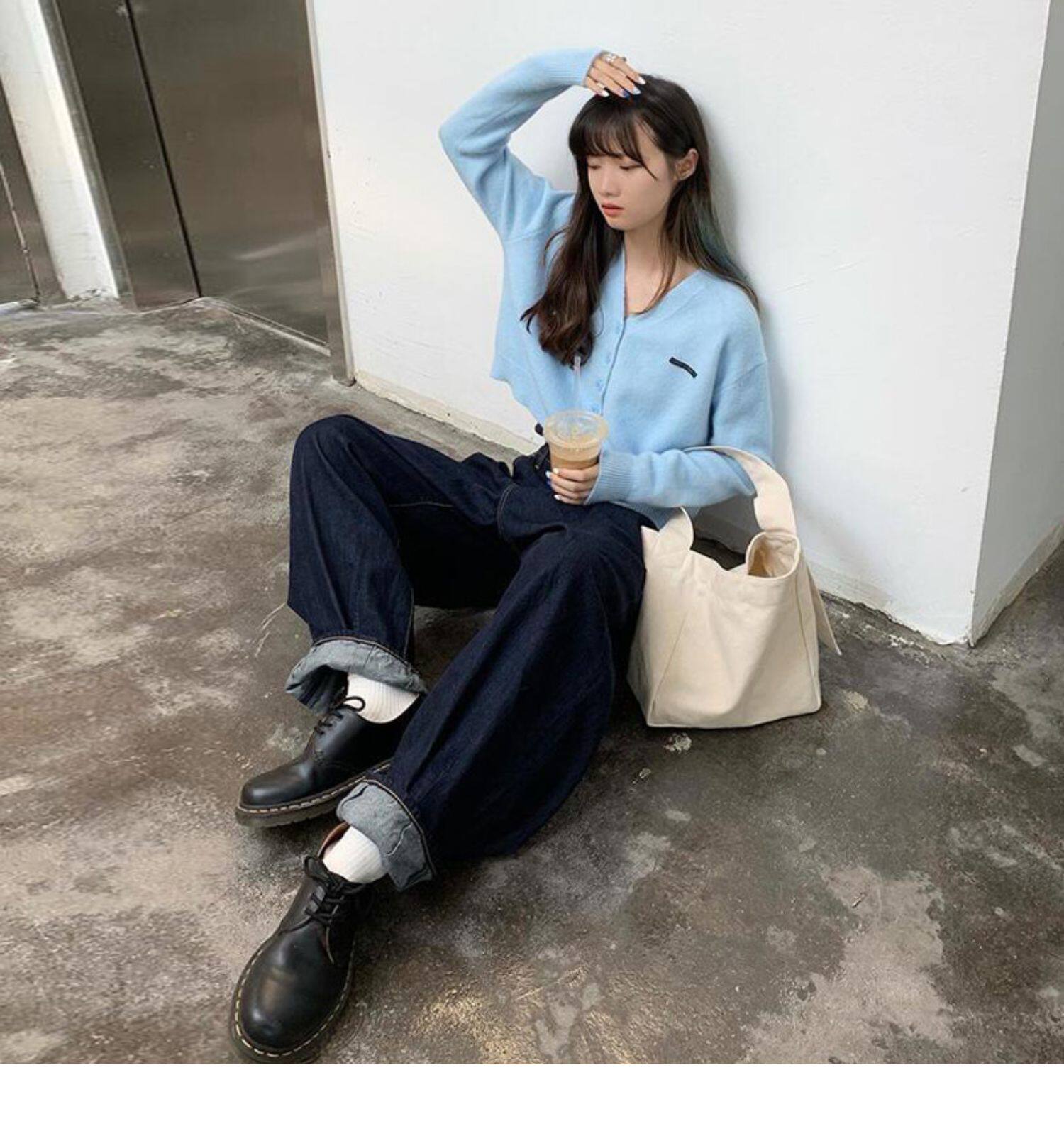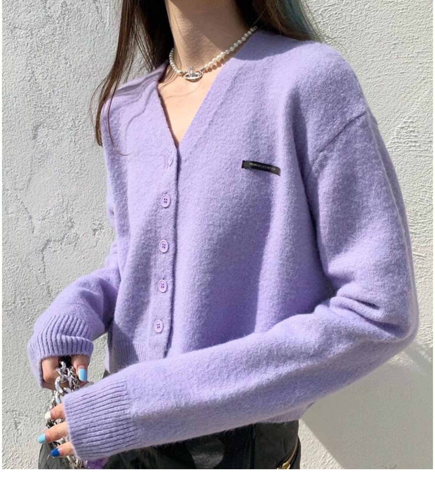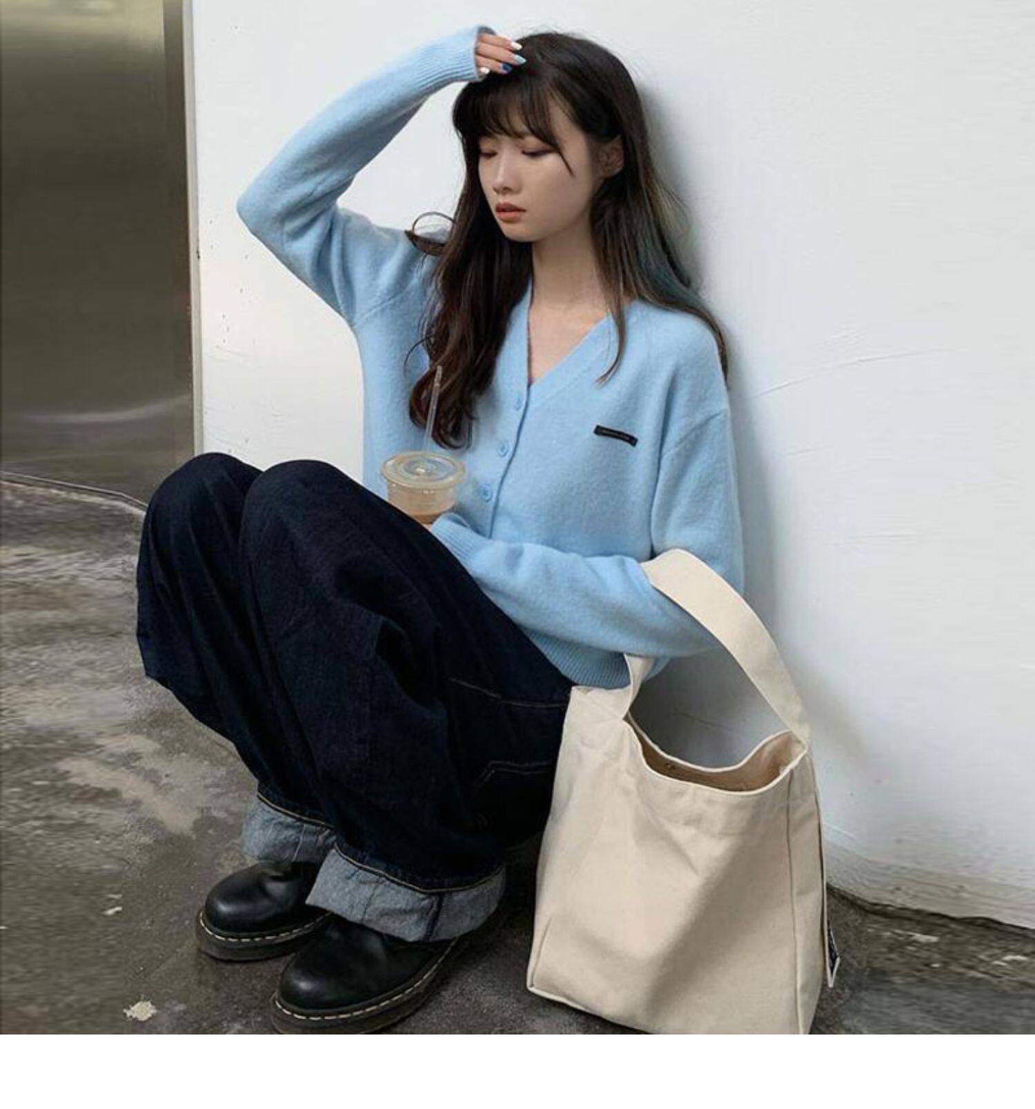 Кардиган, брендовый свитер, короткая лазурная трикотажная куртка, французский стиль, подходит для подростков, V-образный вырез