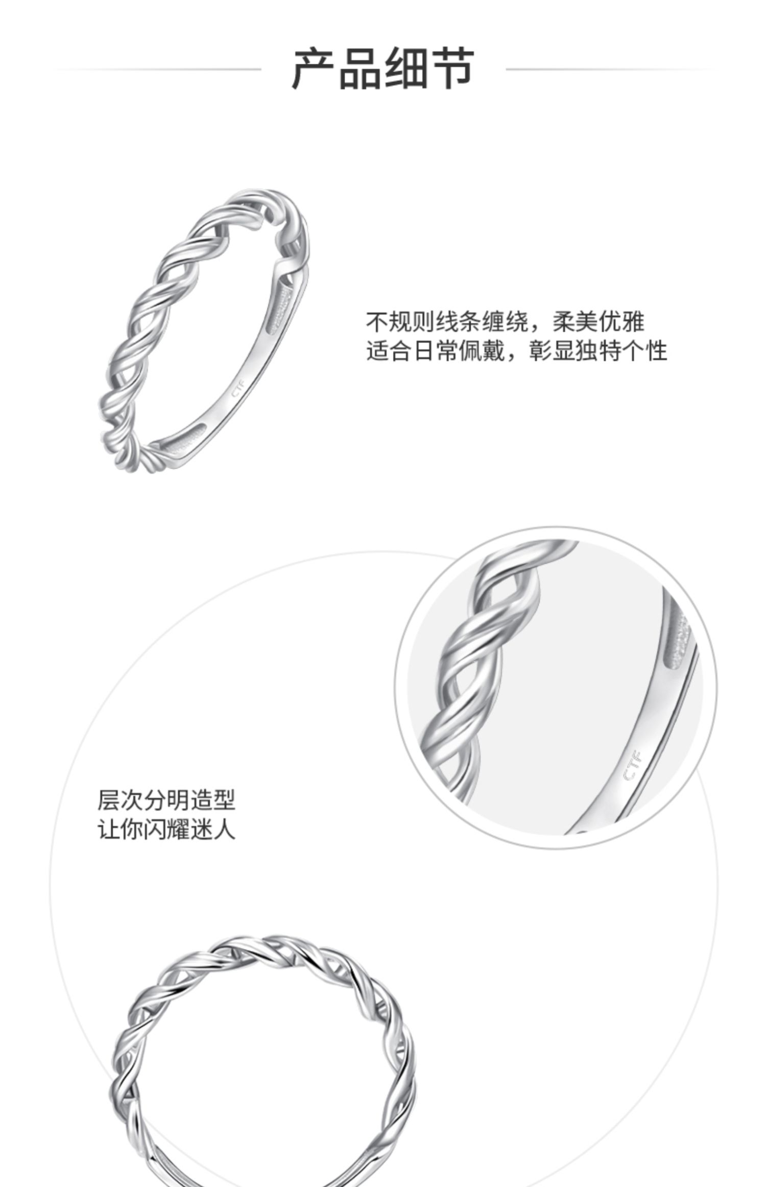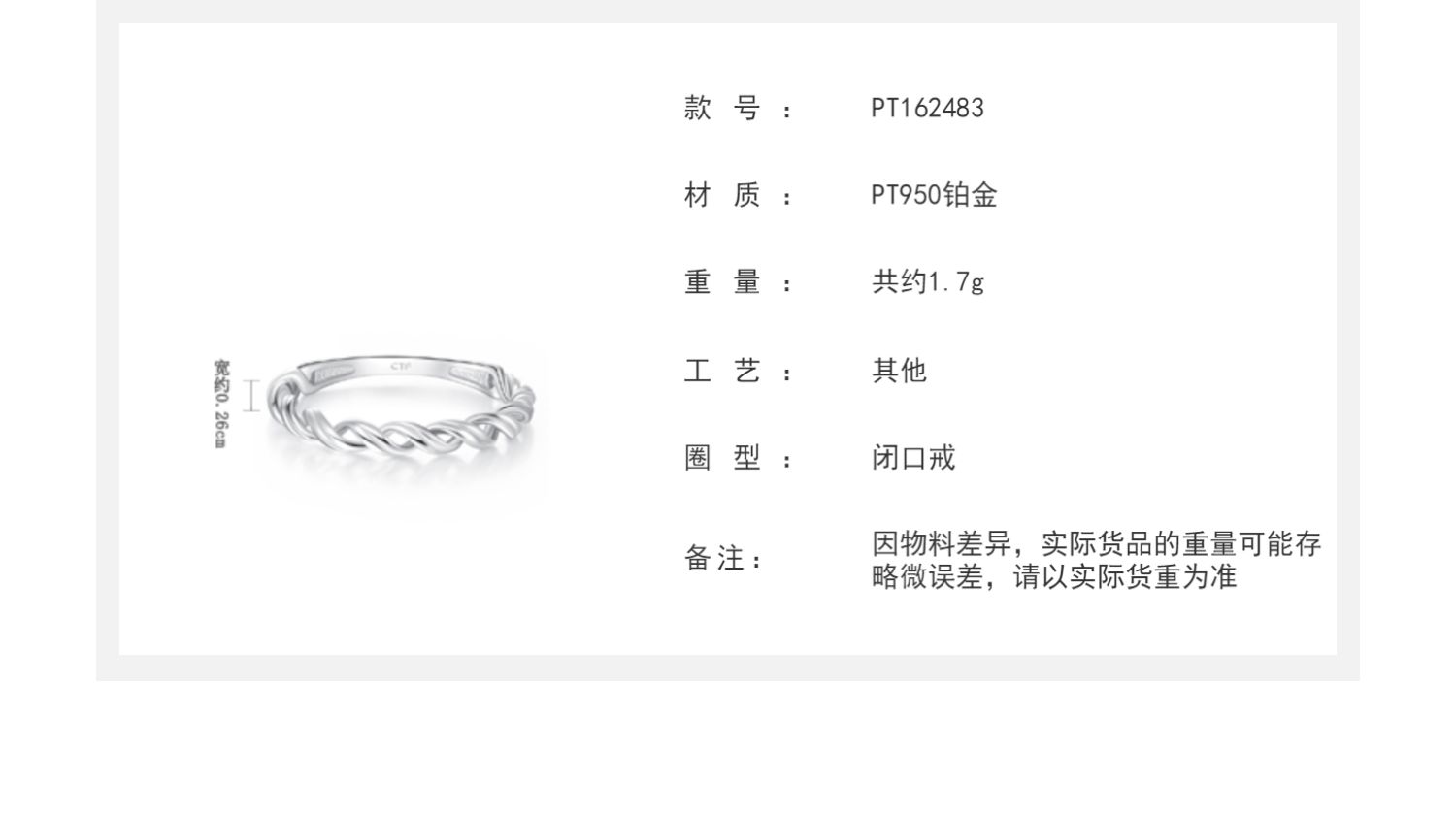 周大福 Ювелирное украшение, платиновое кольцо, платина 950 пробы, платина 162483 пробы
