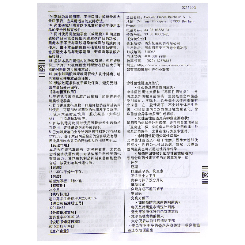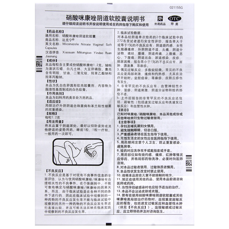 达克宁 Нитрат нитрат дакнина миманзола из мягкой капсулы вагинального влагалища 1200 мг*1 капсула/коробка hx