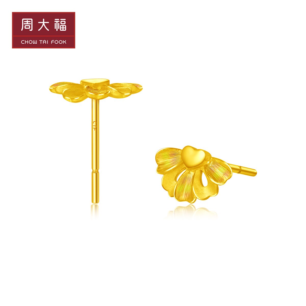 周大福 Ювелирные изделия наполовину наполовину цветочные серьги с золотым золотом по цене EOF261 подарок