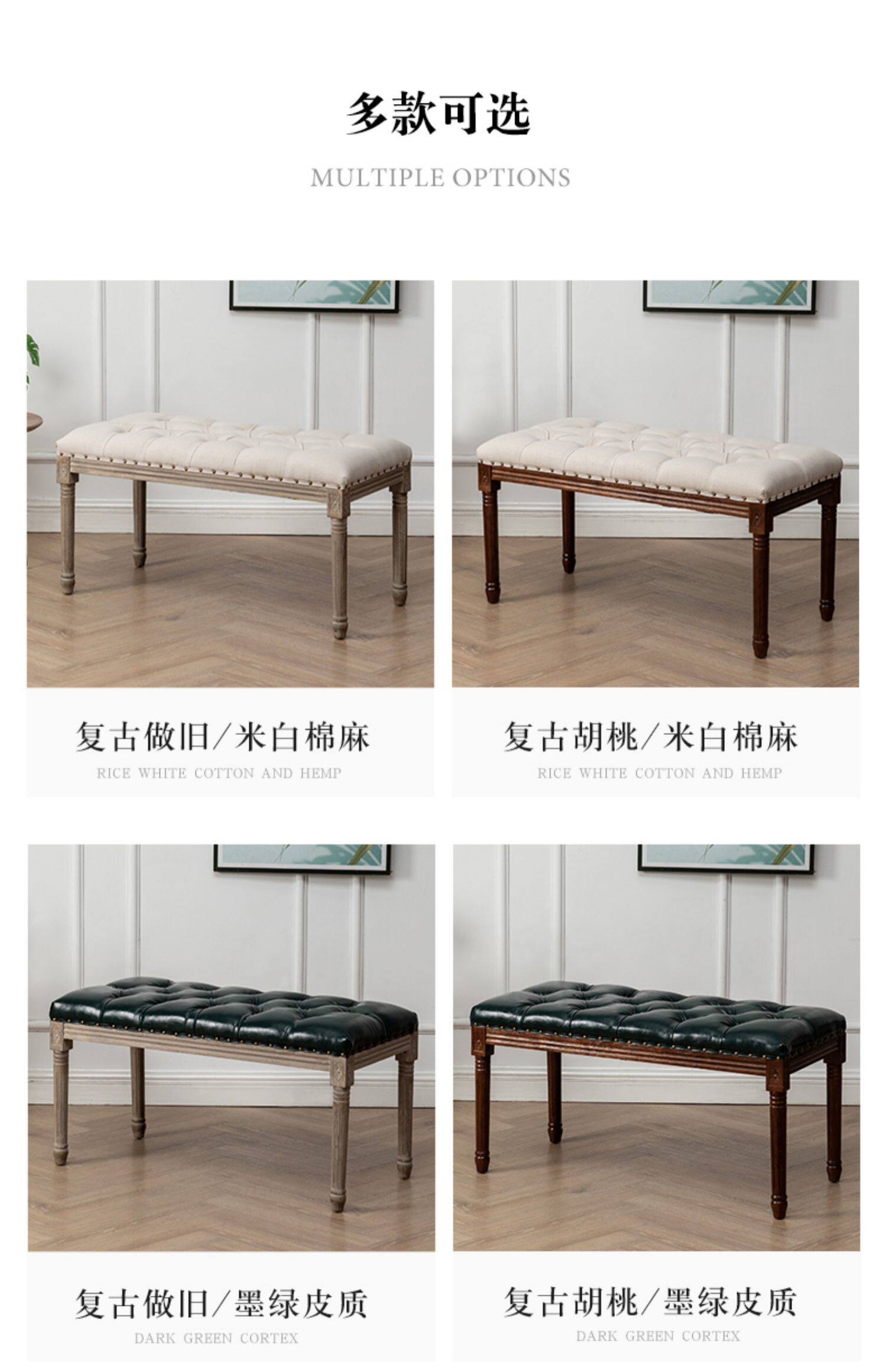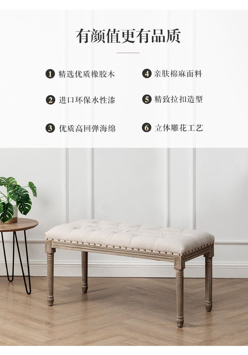 Американская сельская ретро ретро резо длинный табурет свадебный фильм о пианино -табурет носит кровать для обуви с твердым деревом и спальня для хвостового табурета
