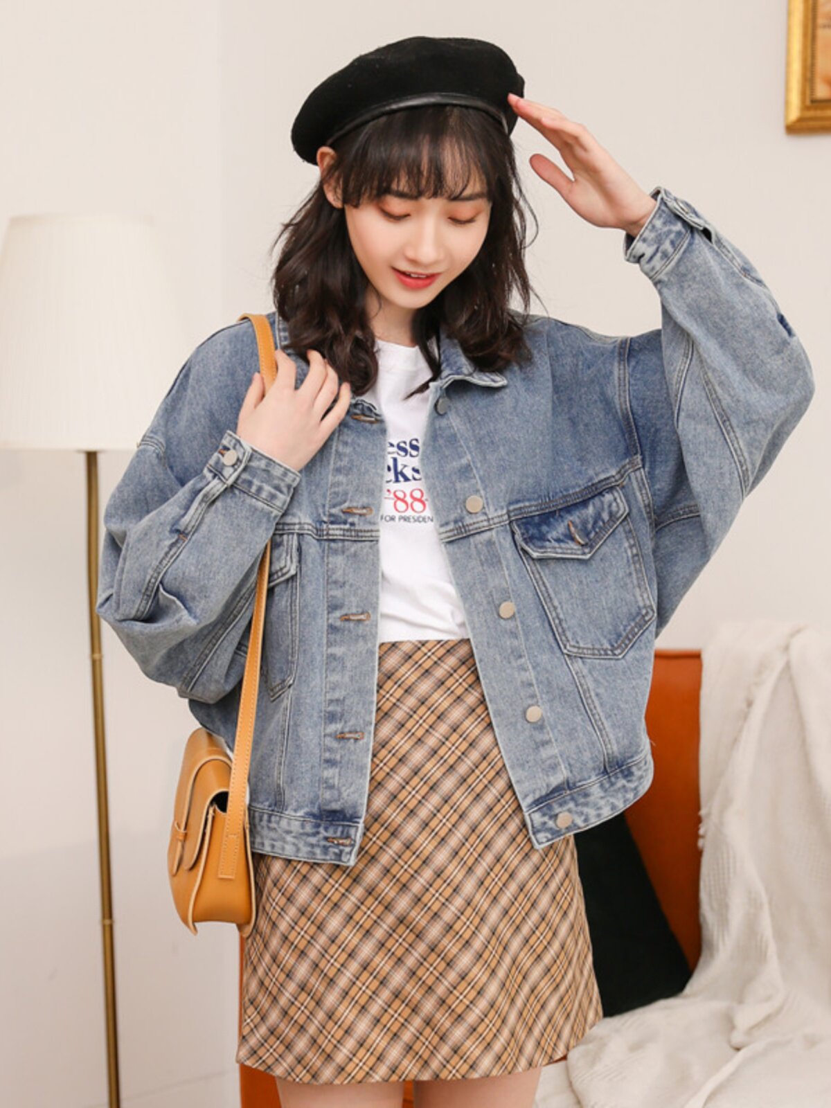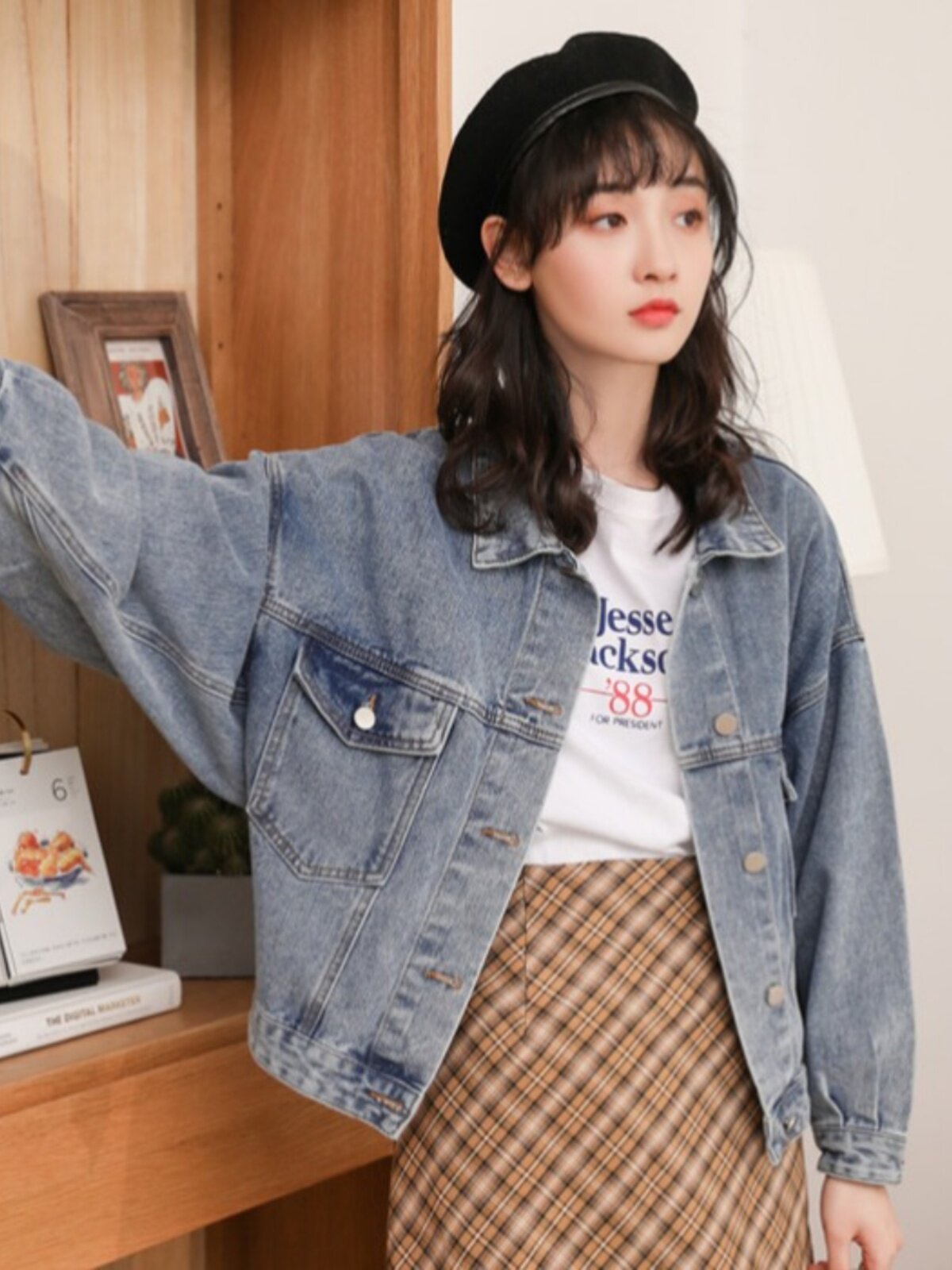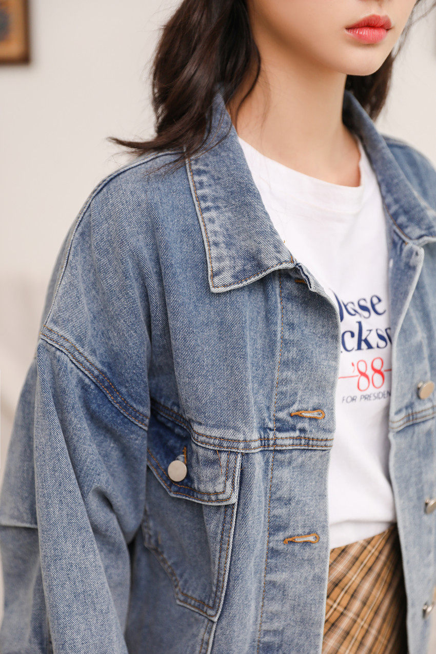 Короткая джинсовая куртка, бейсбольная форма, в корейском стиле, 2024 года