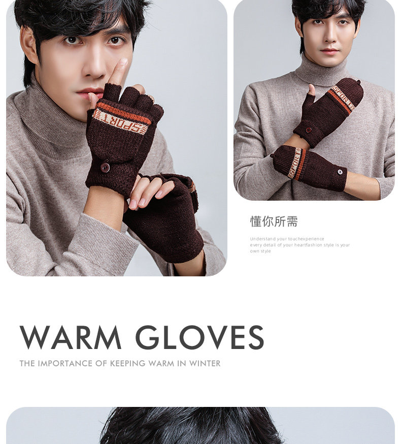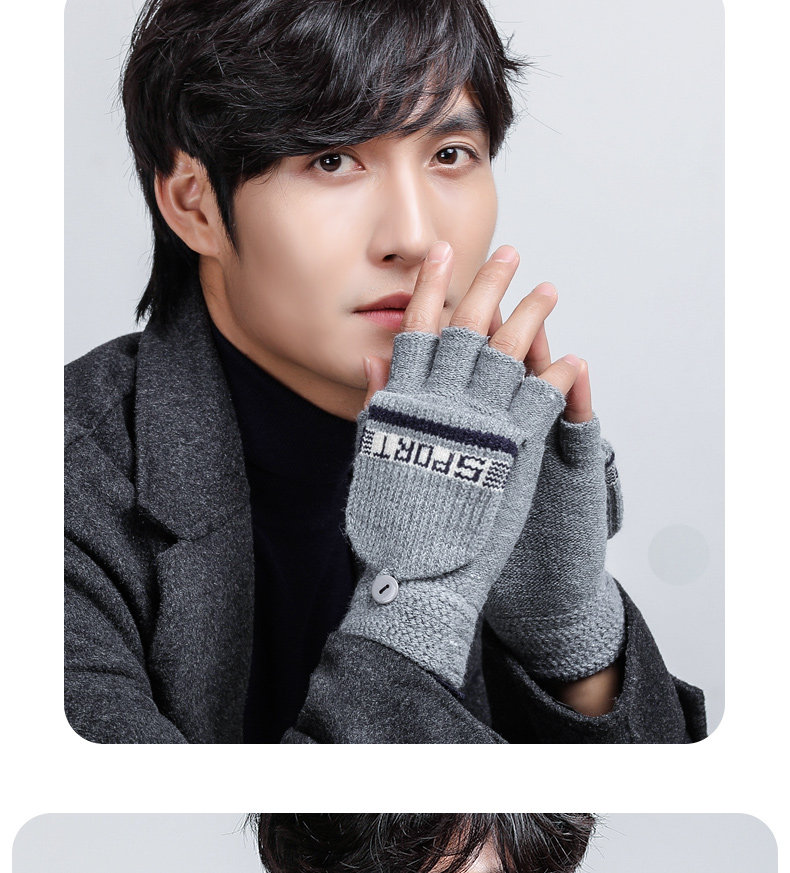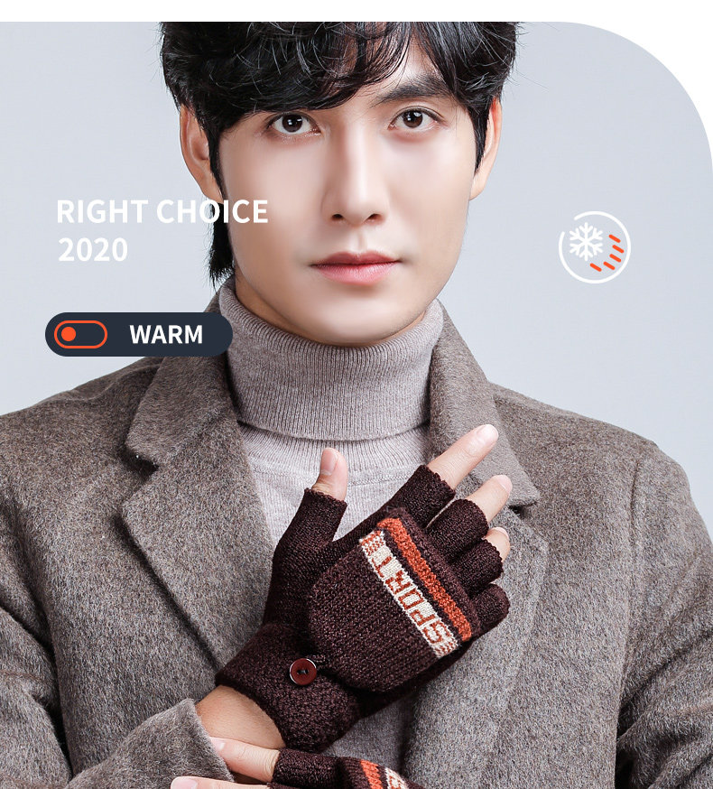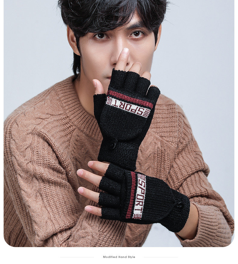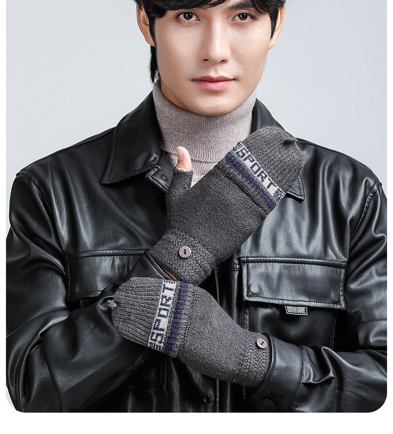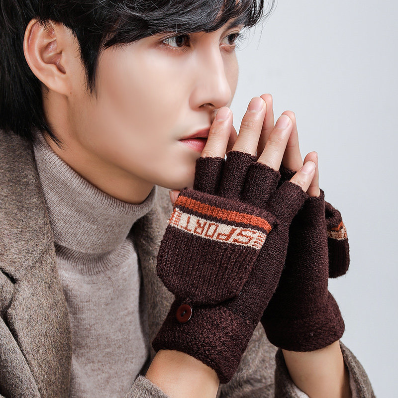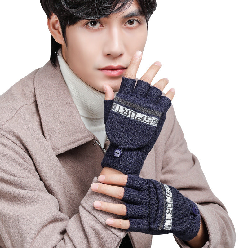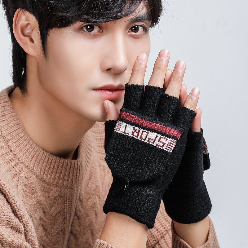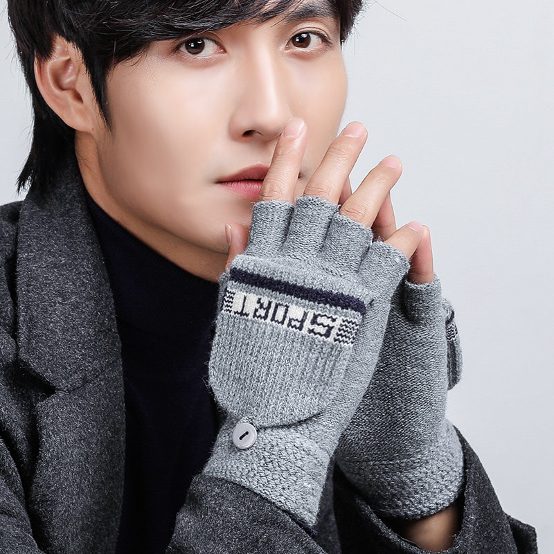 Мужские зимние утепленные удерживающие тепло трикотажные перчатки, в корейском стиле
