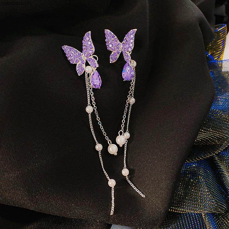Сиреневые элегантные модные серьги с бантиком из жемчуга с кисточками, инкрустировано бриллиантами