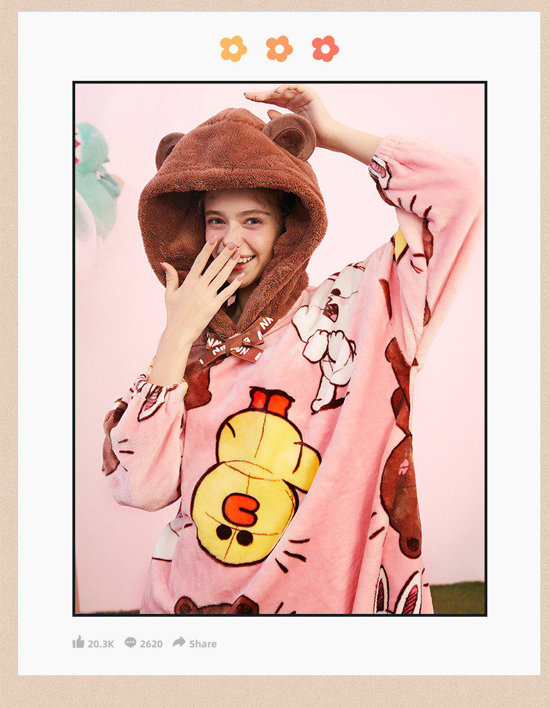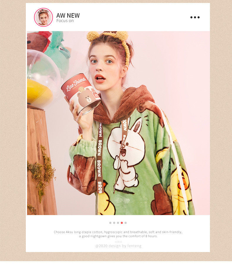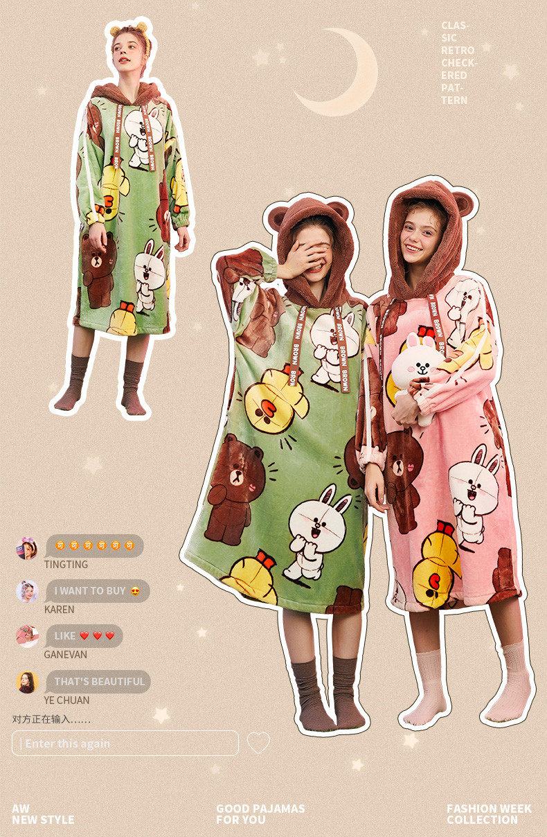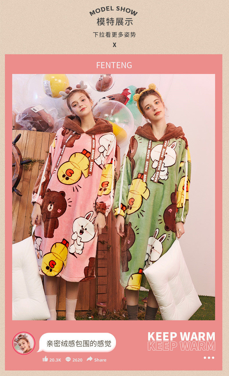 芬腾 Демисезонная пижама, юбка, коралловый бархатный мультяшный банный халат с капюшоном, увеличенная толщина
