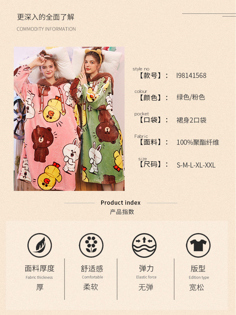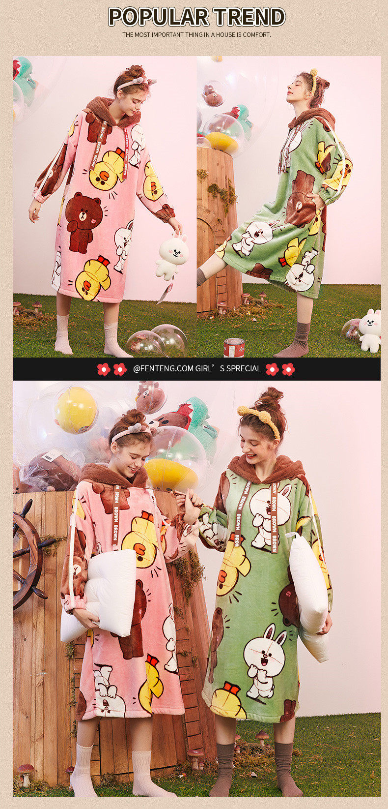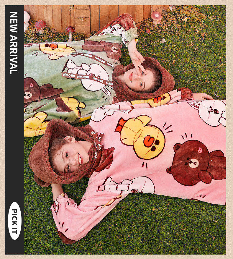 芬腾 Демисезонная пижама, юбка, коралловый бархатный мультяшный банный халат с капюшоном, увеличенная толщина