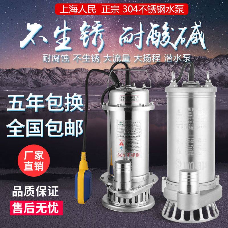 Шанхайский народный насос 304 Полный насос из нержавеющей стали 220V Коррозия -Устойчивый химический насос Высокий насос с водным насосом.
