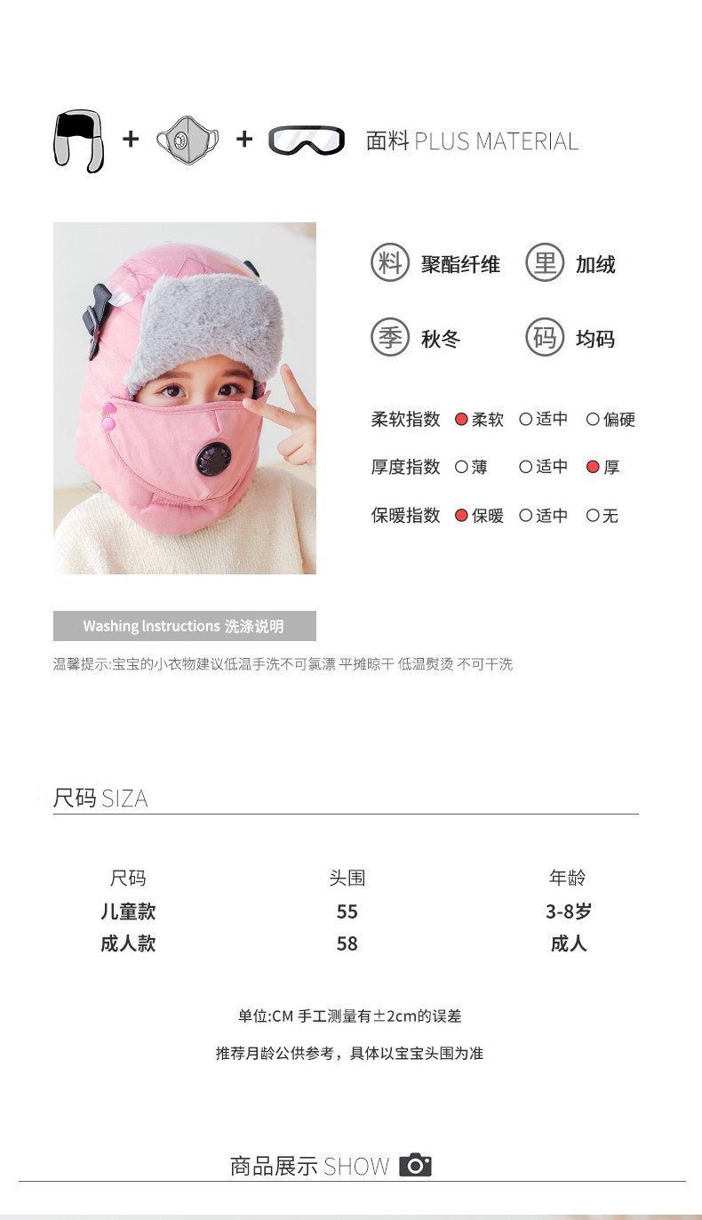 Размер: Шапка, шарф, медицинская маска, ветрозащитные защитные очки, Очки, шапка, шарф, медицинская маска