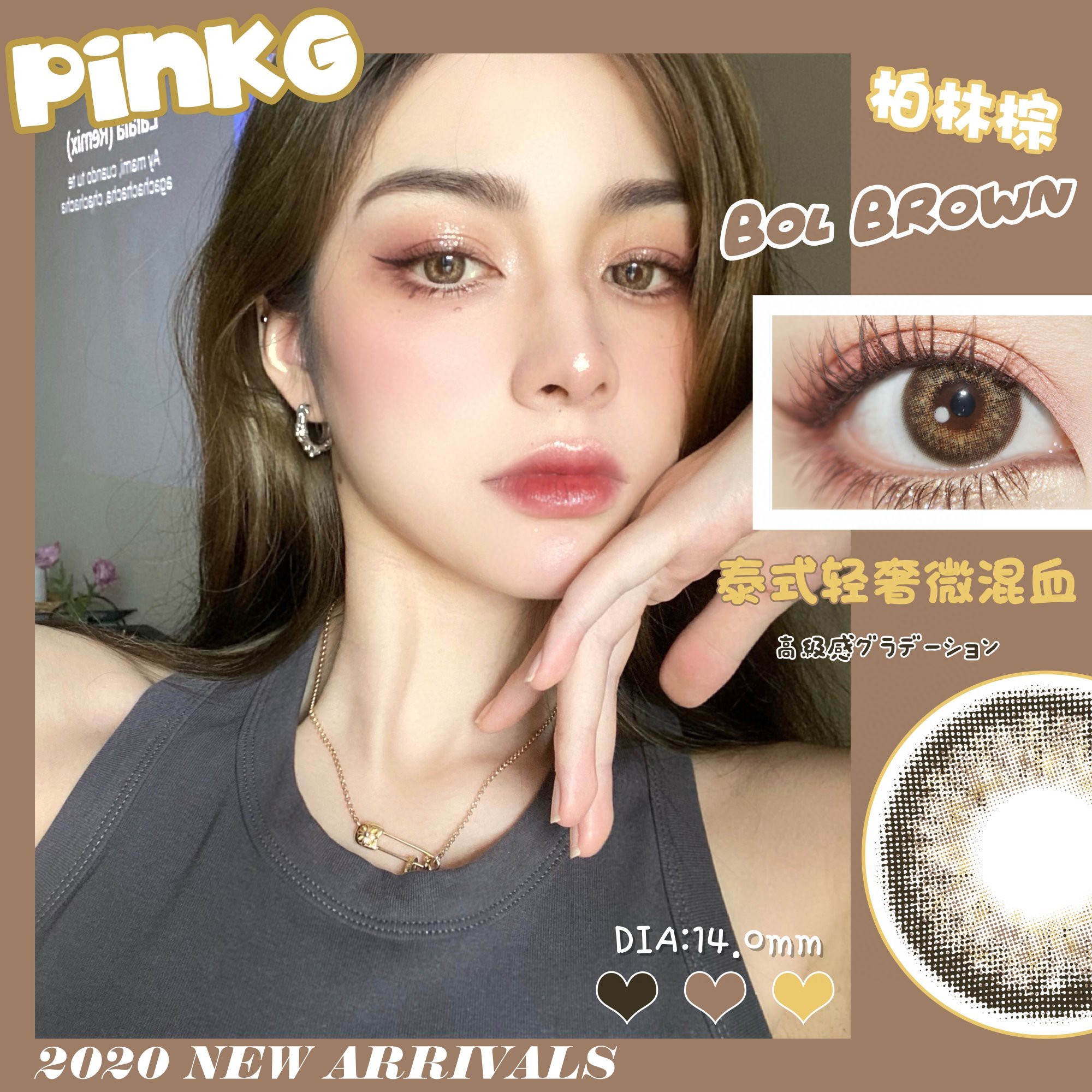 Новый продукт Pinkg MITO Полировый лумин клейкий рис Группа Маленький сыр зеленый коричневый молоко соля сосновой берлин -коричневый контактный контактный линзы DK
