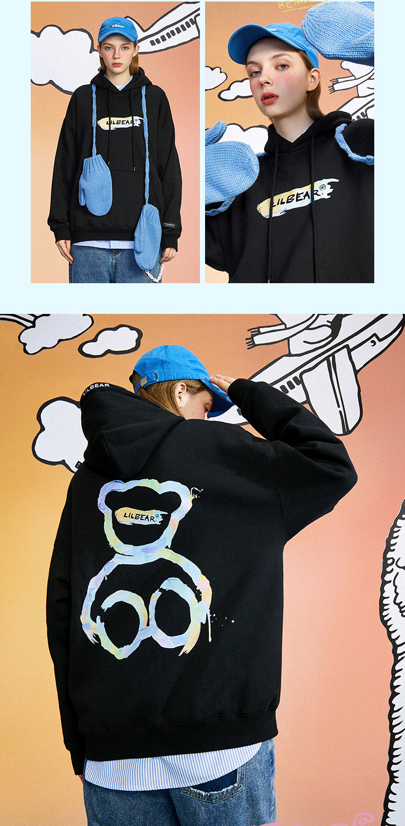 Lilbetter Толстовка, флисовая куртка, с медвежатами, оверсайз