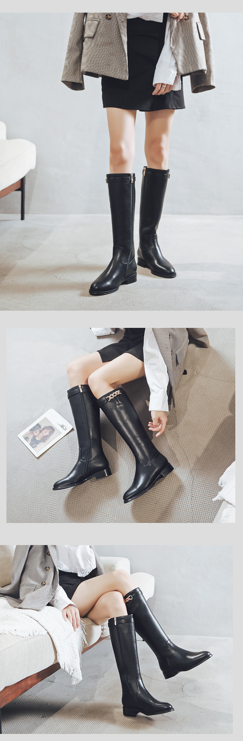 Демисезонные универсальные высокие сапоги с молнией, коллекция 2021