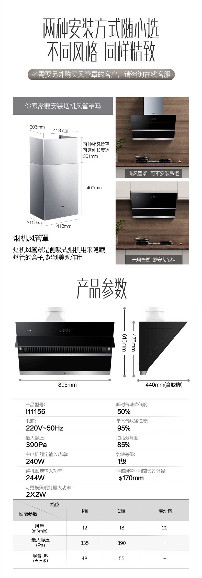 Vantage I11127s боковой всасывающий насос с капюшонами газовая плита набор еда дома кухня Большой всасывающий дым костюмы