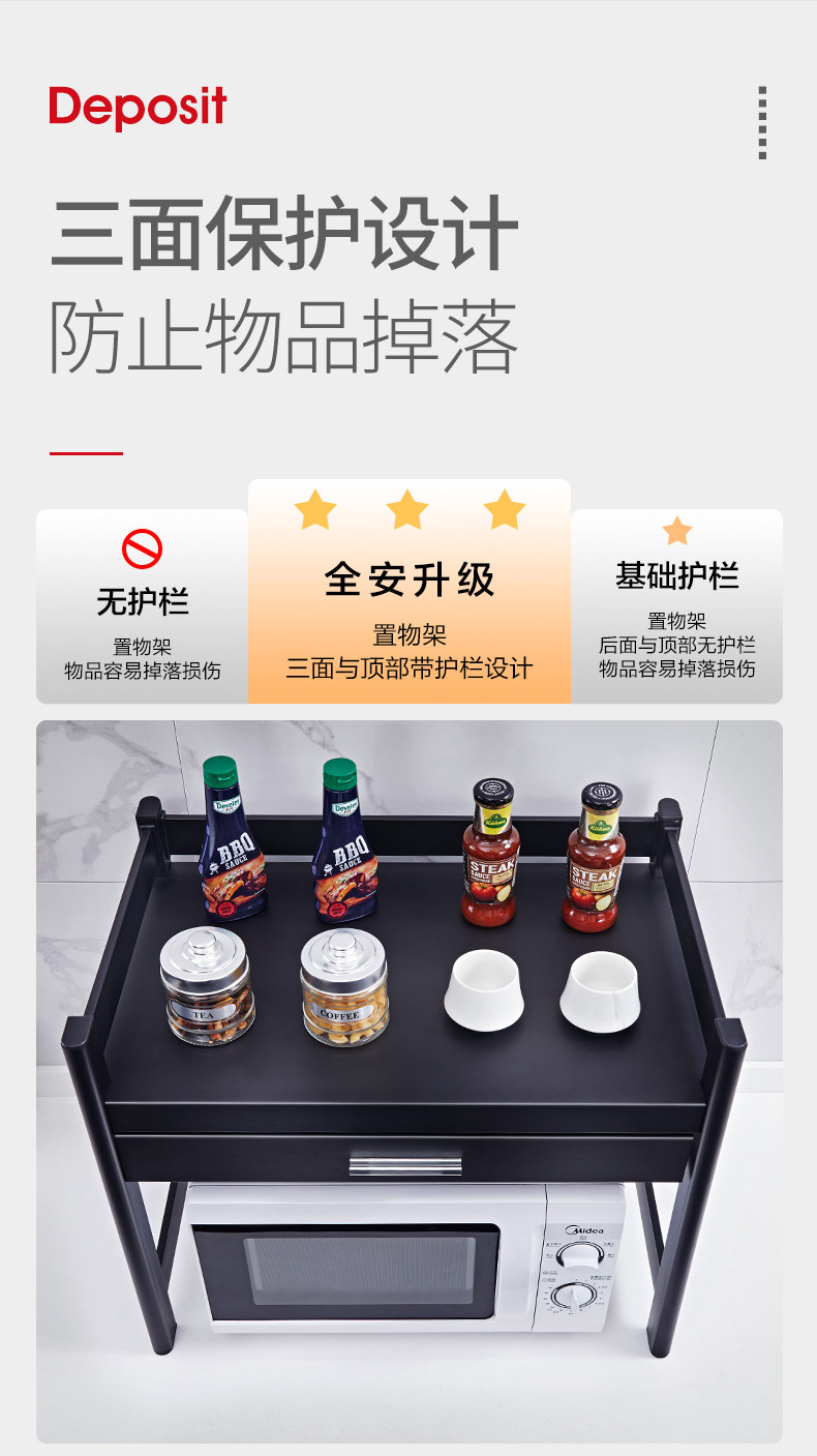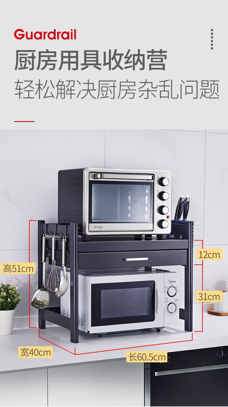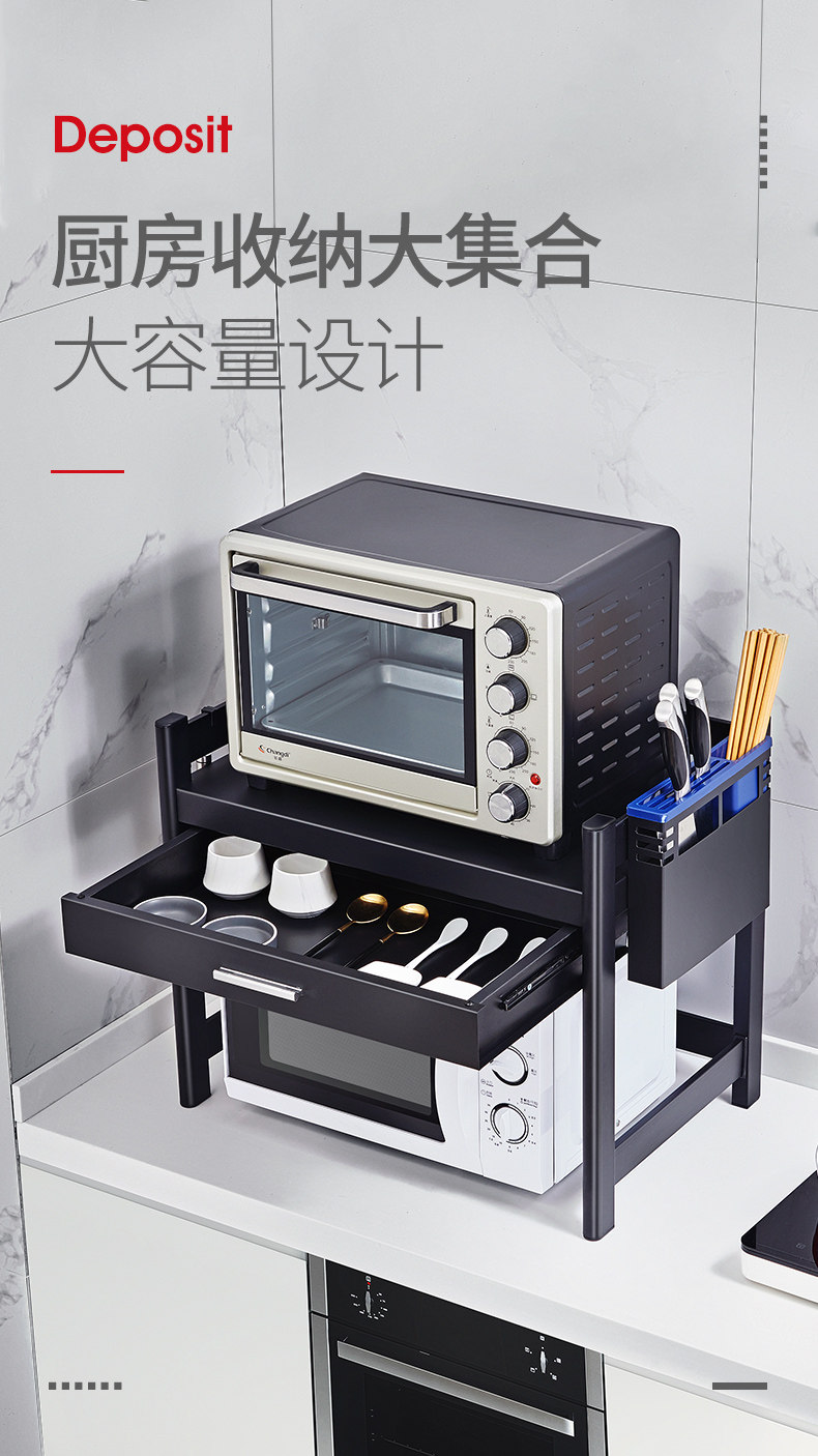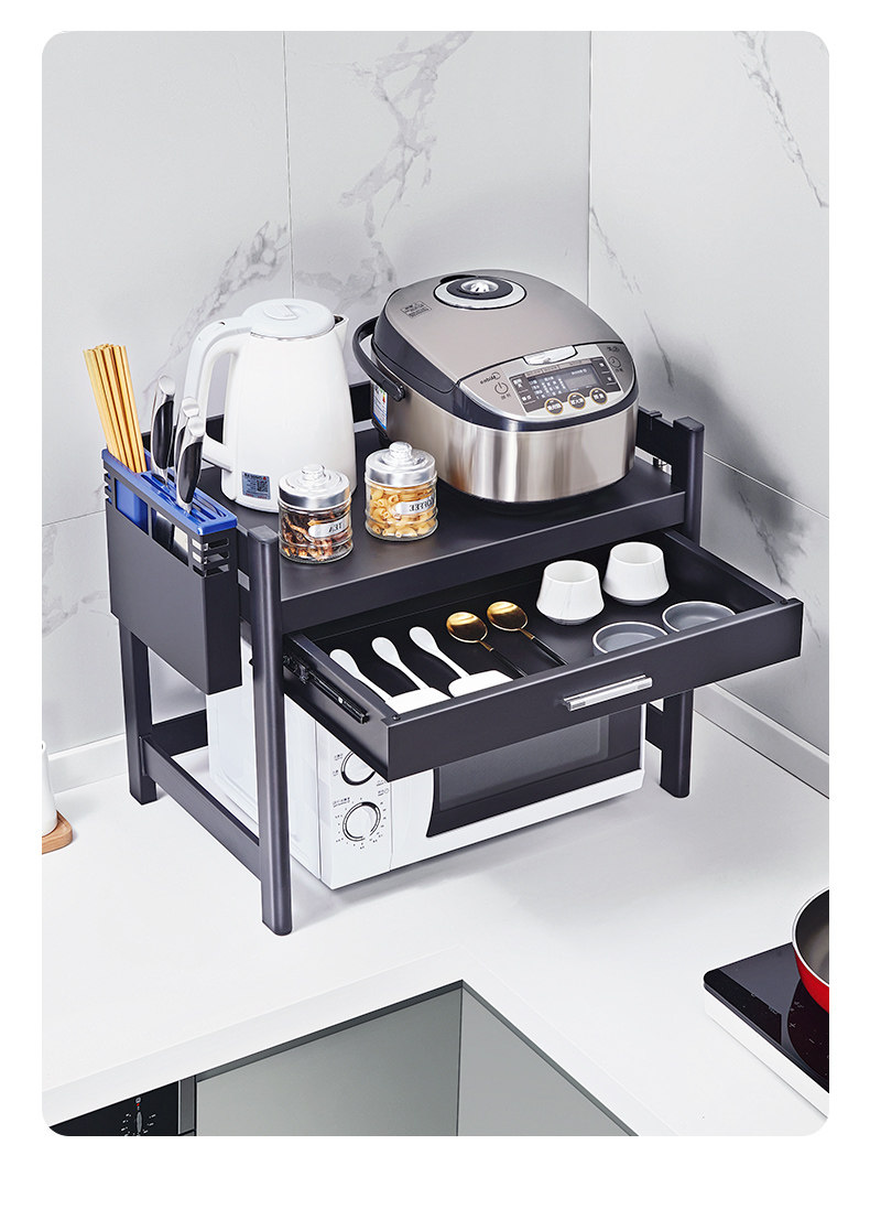 Микроволновая печь на полке кухонные принадлежности с ящиками шкаф