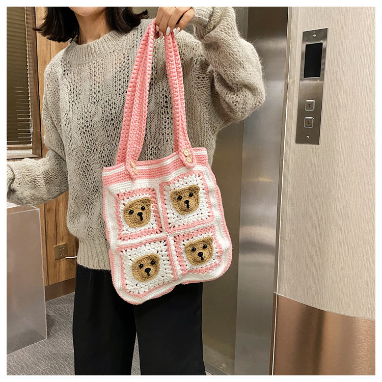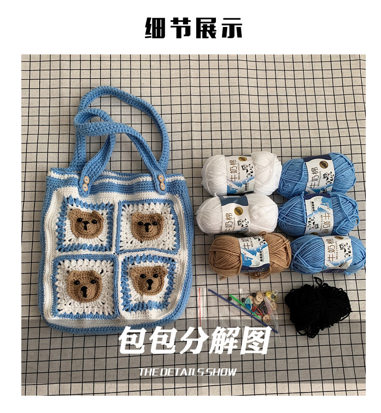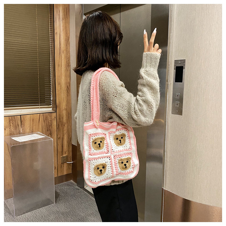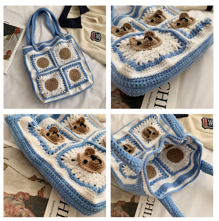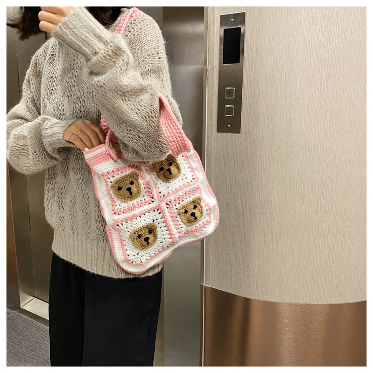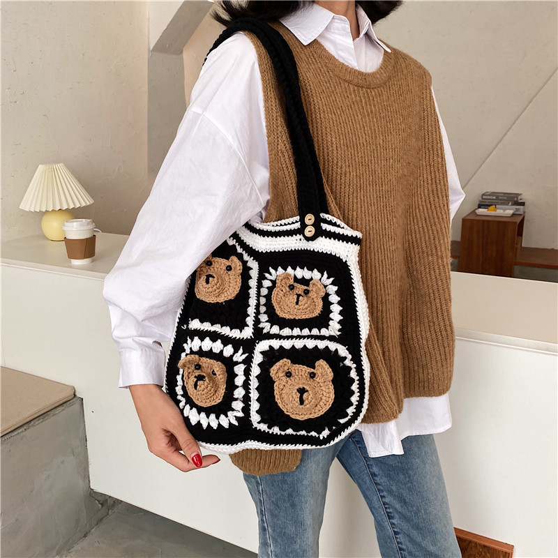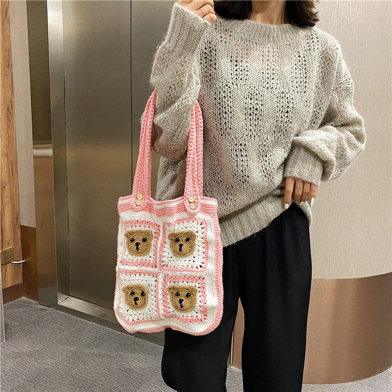 Вязаная сумка ручной работы, трикотажный набор материалов, сумка на одно плечо, DIY, связать своими руками, с медвежатами, новая коллекция
