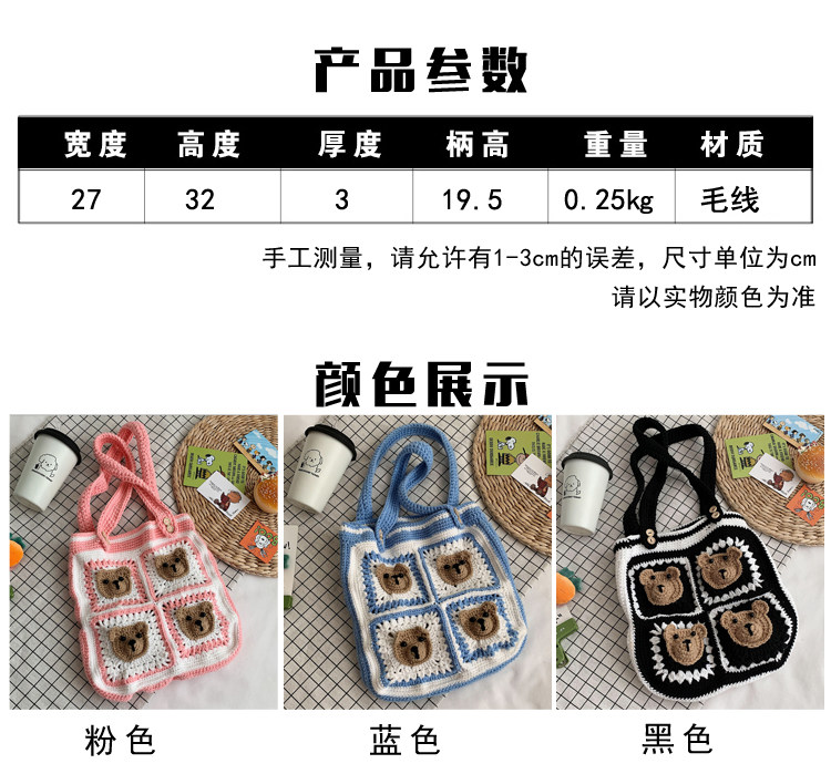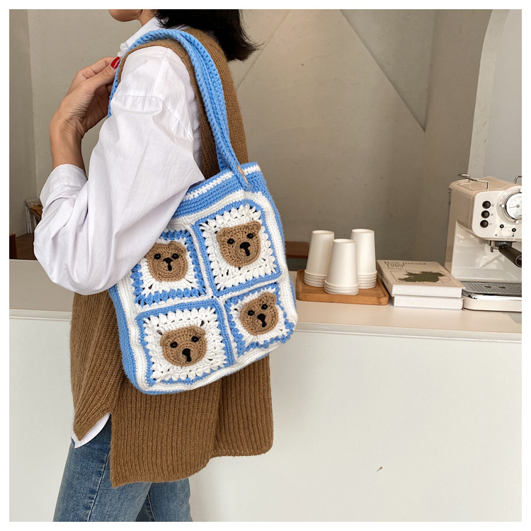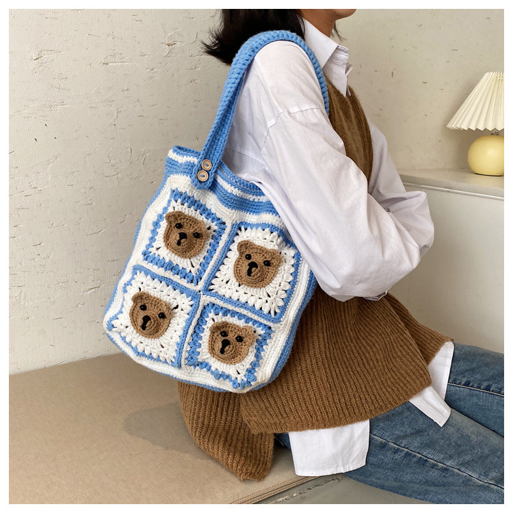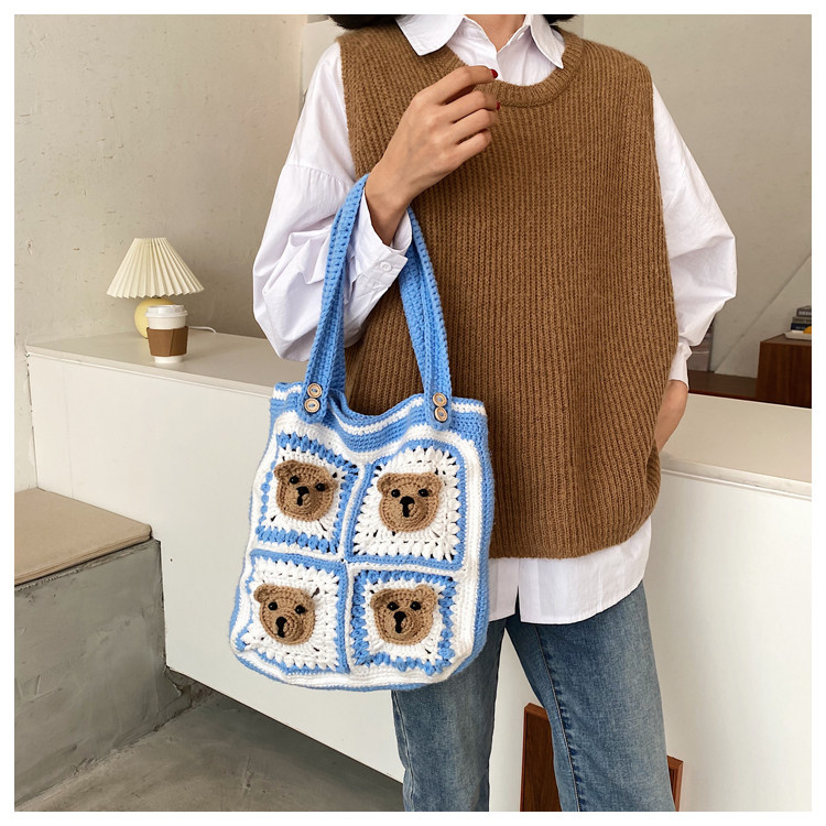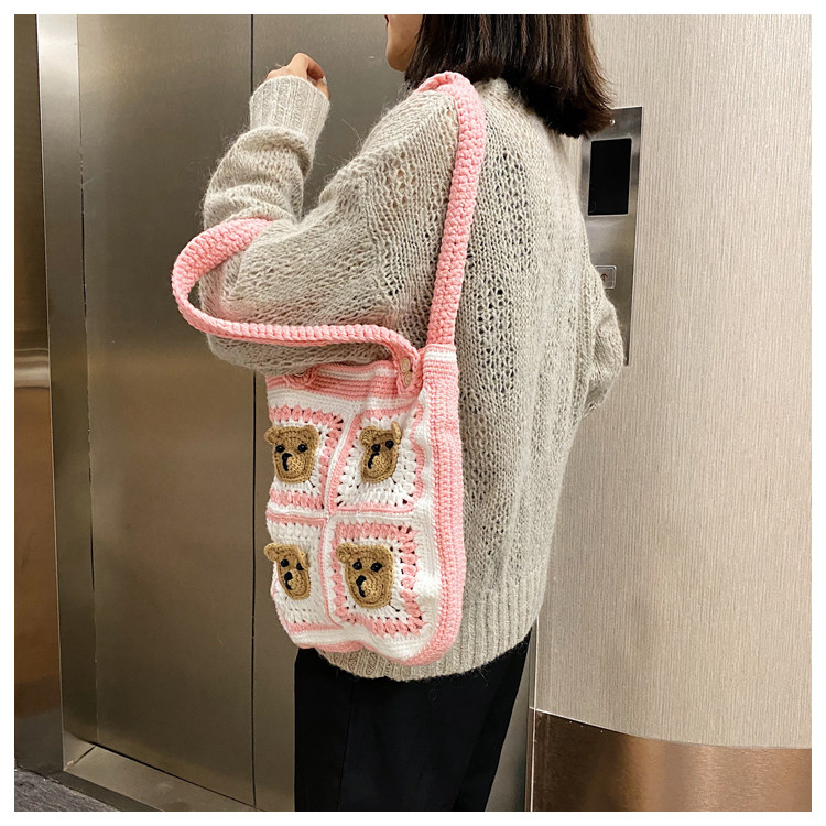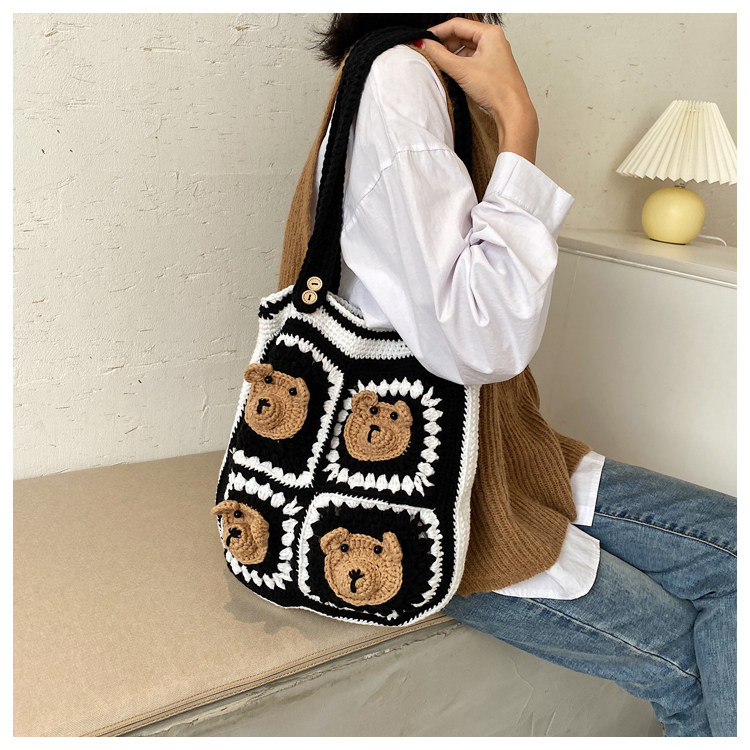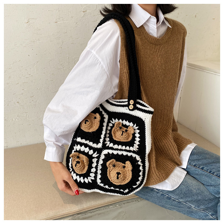Вязаная сумка ручной работы, трикотажный набор материалов, сумка на одно плечо, DIY, связать своими руками, с медвежатами, новая коллекция