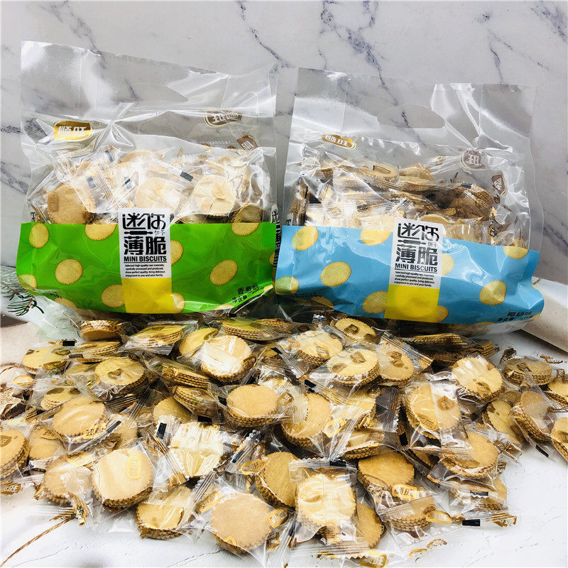 Шунванг мини -хрупкий печенье 408G Независимые небольшие упаковки повседневные закуски зеленый лук кокосовый кремовый хрустящий хрустящий хрустящий круглый круглый печенье