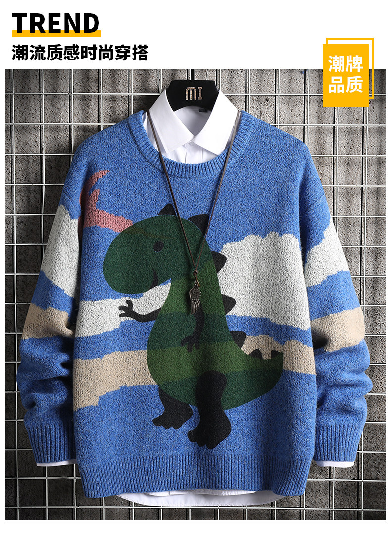 Демисезонный зимний мужской трендовый удерживающий тепло универсальный трикотажный свитер с круглым воротником, в корейском стиле, увеличенная толщина