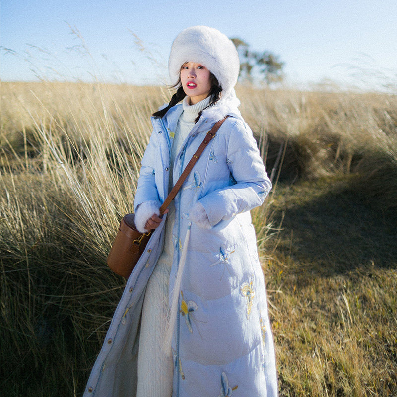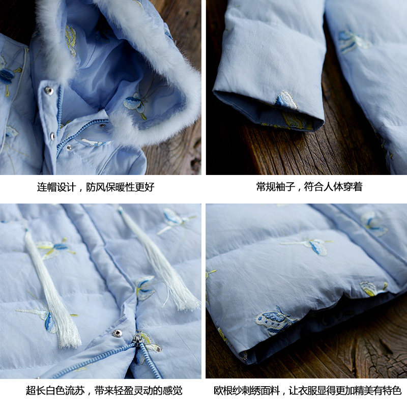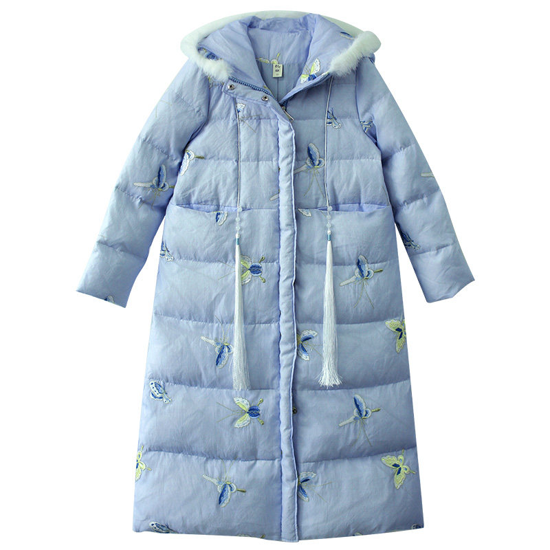 Ретро демисезонный пуховик, длинная толстовка с капюшоном, куртка, с вышивкой