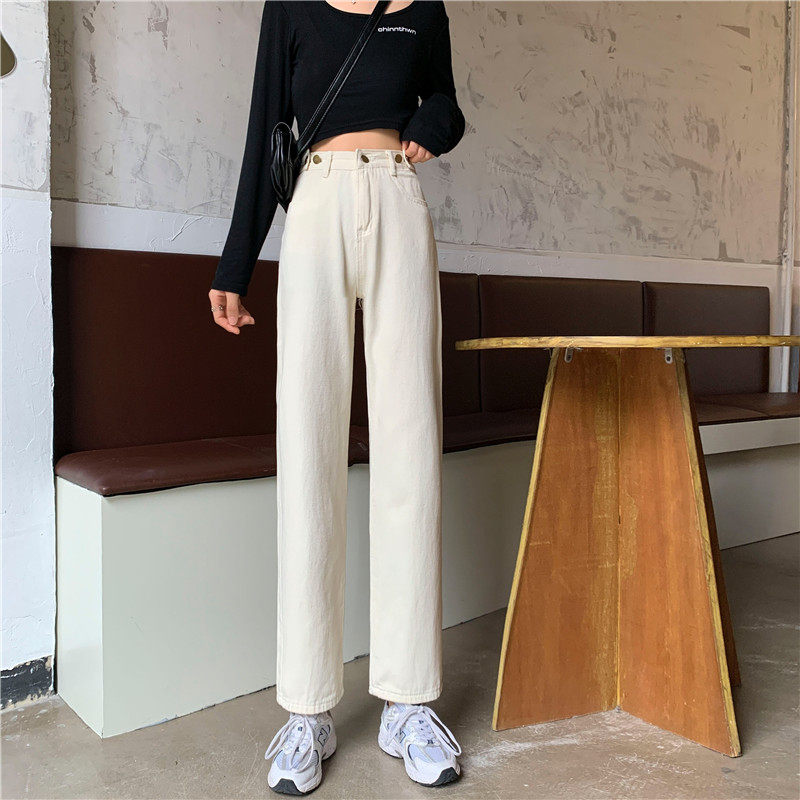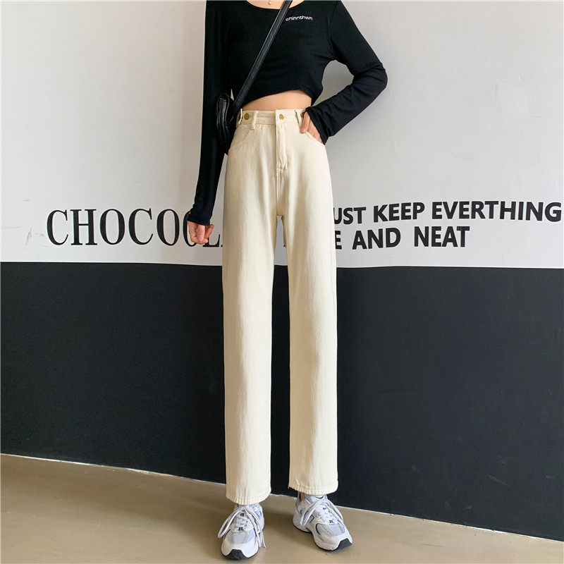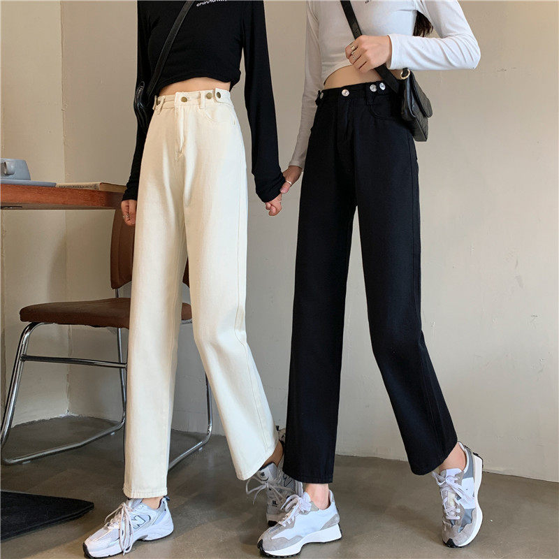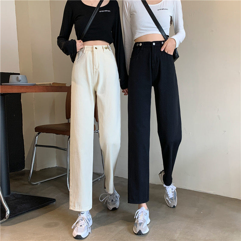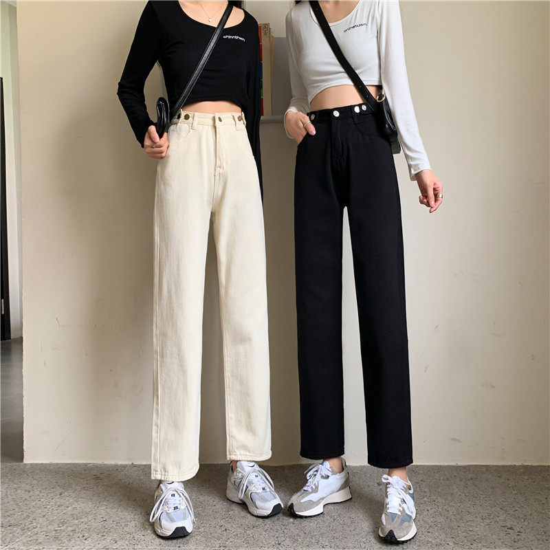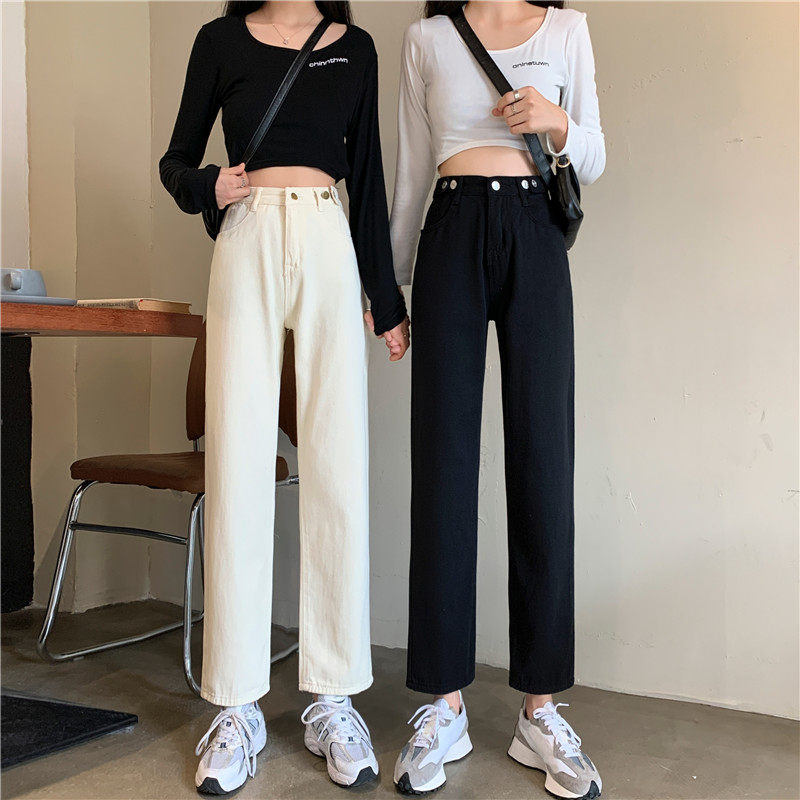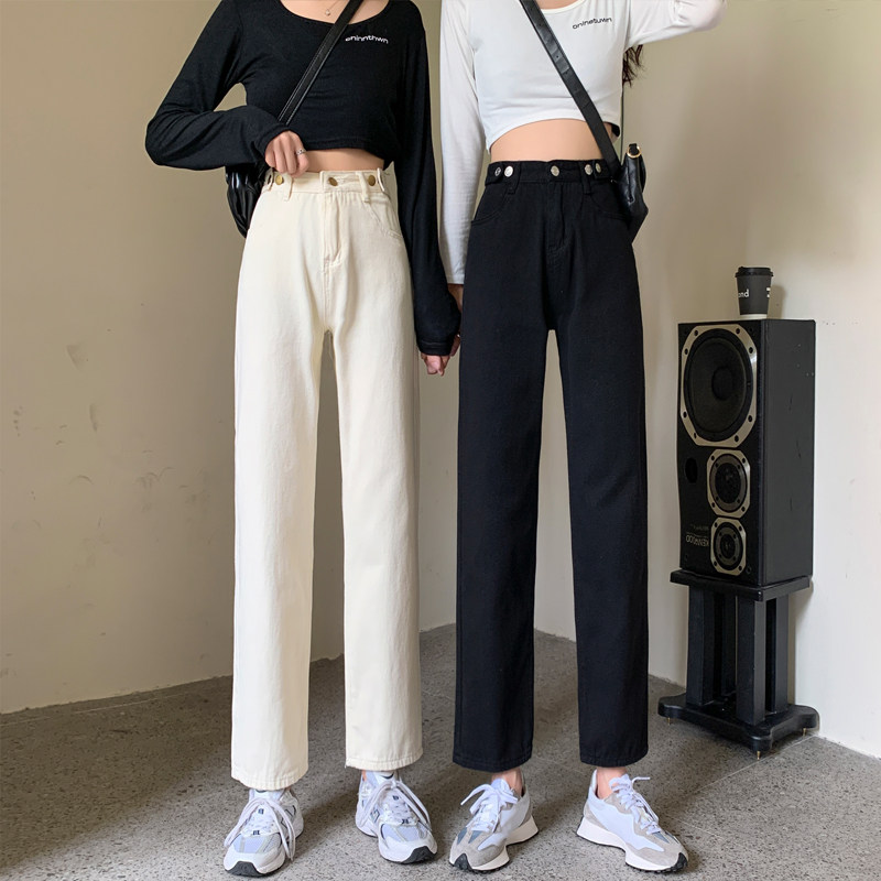 Джинсы, демисезонные осенние штаны, высокая талия, большой размер, коллекция 2023, свободный прямой крой