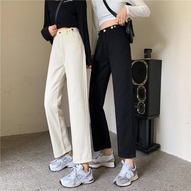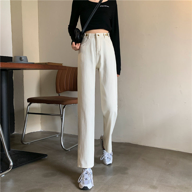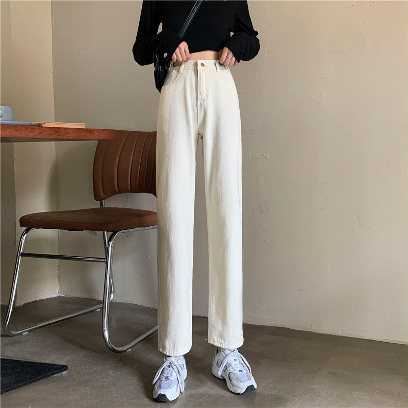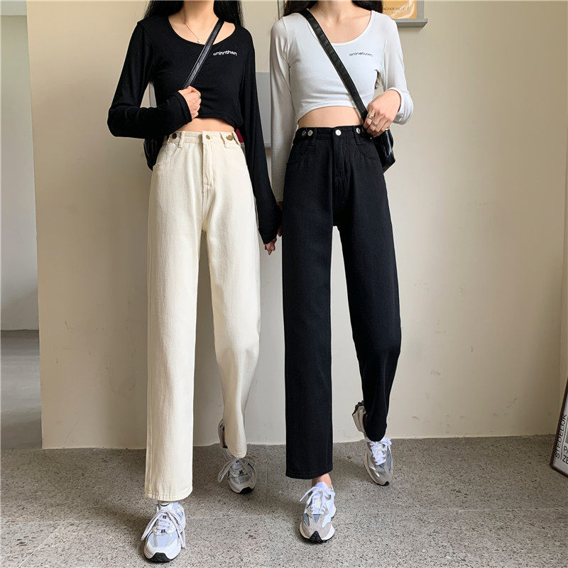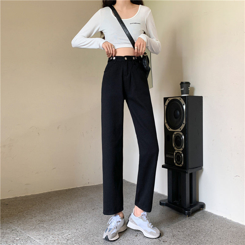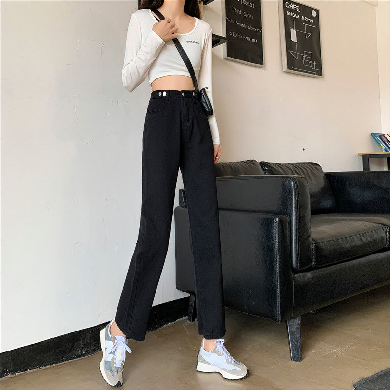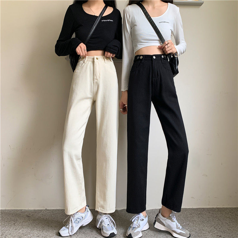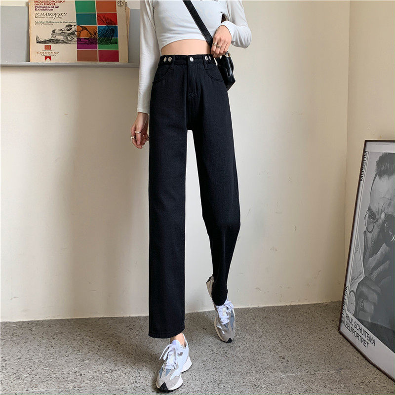Джинсы, демисезонные осенние штаны, высокая талия, большой размер, коллекция 2023, свободный прямой крой